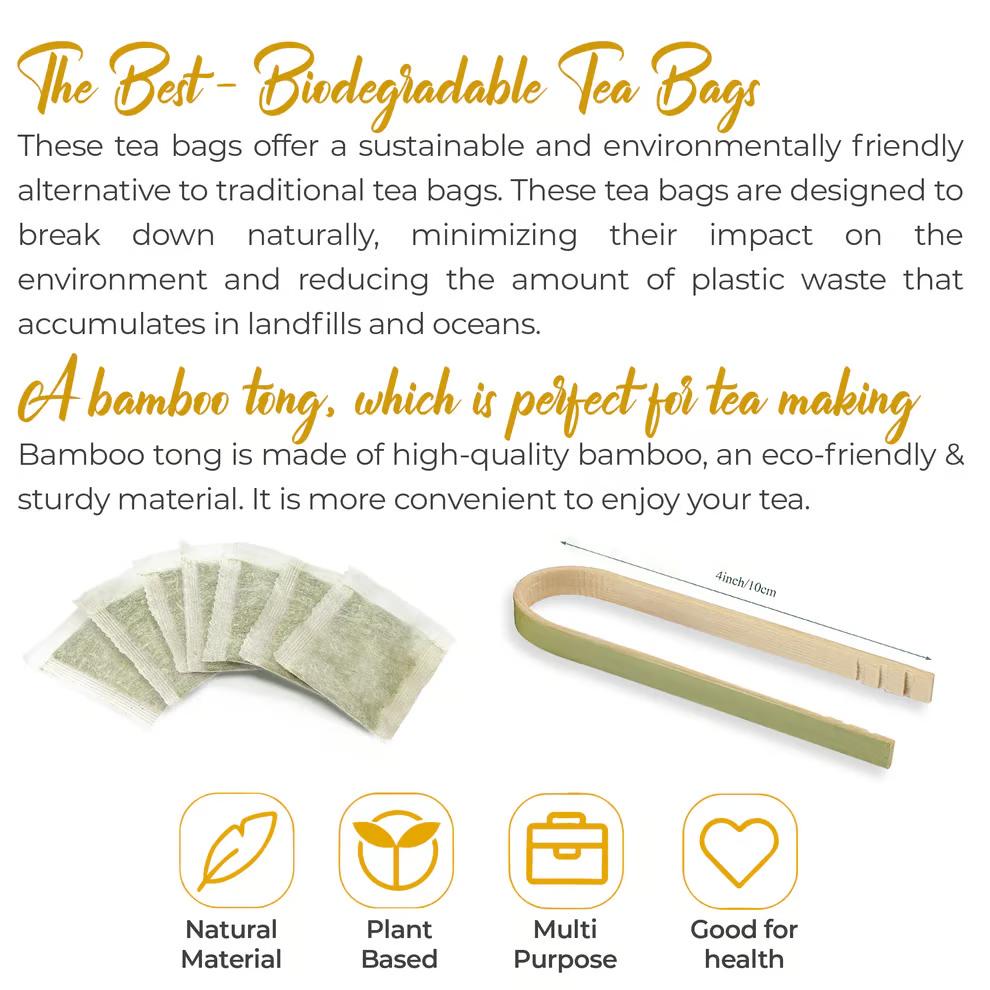 ✅ BIODEGRADABLE TEA BAG - NATURAL MATERIAL: The tea bags are made of natural corn fiber, which is friendly for the environment. No Strings. No Wrapped. No Staples. No Adhesive. No Bleach. No Dyes - 100% Safety.