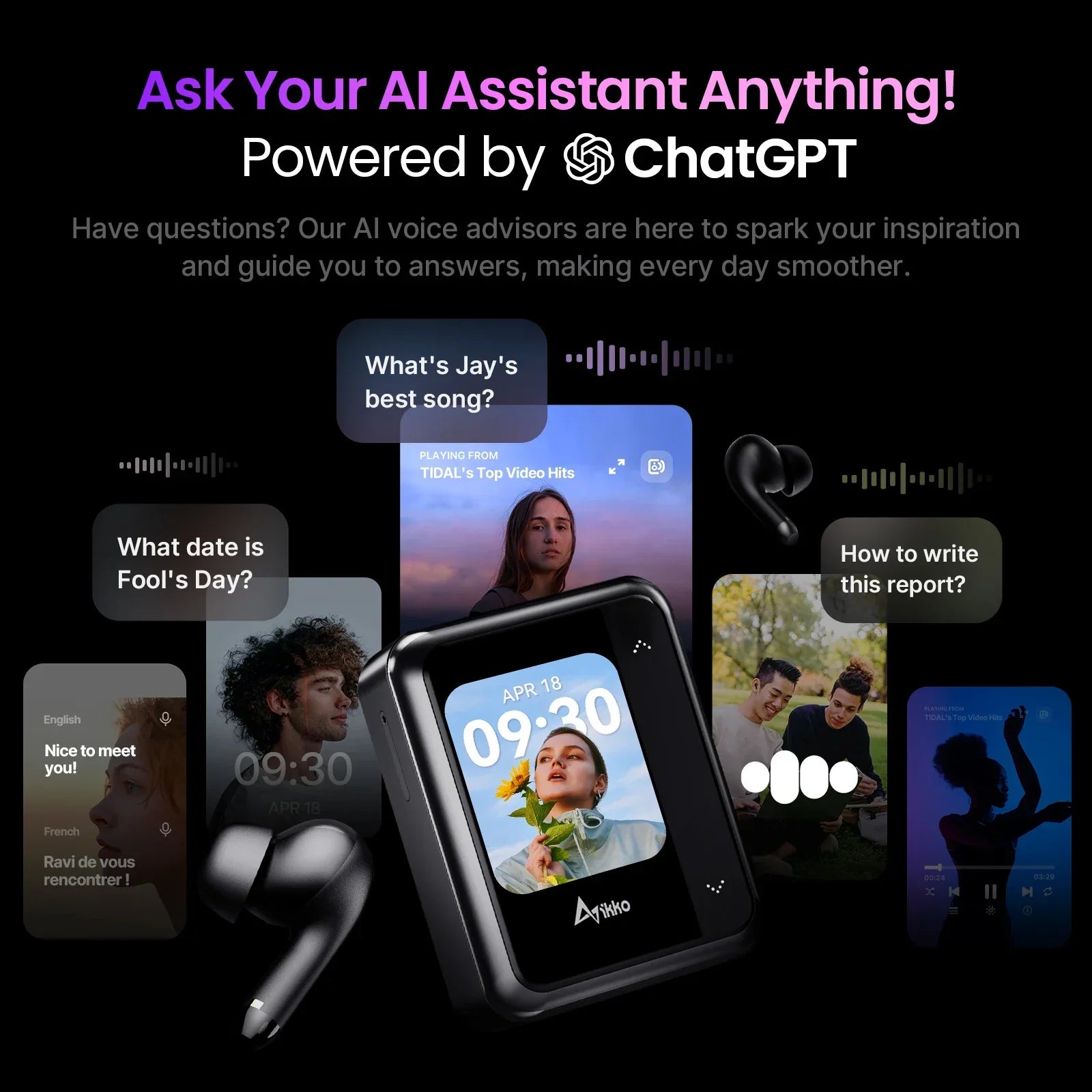 * Engage in voice dialogues with ChatGPT, stream from Spotify or Apple Music, enjoy Real-Time Translation in 45 languages, play music offline, and customize your sound with EQ Sound Personalization. Stay excited, as more apps are on the horizon, available for download via the cloud...