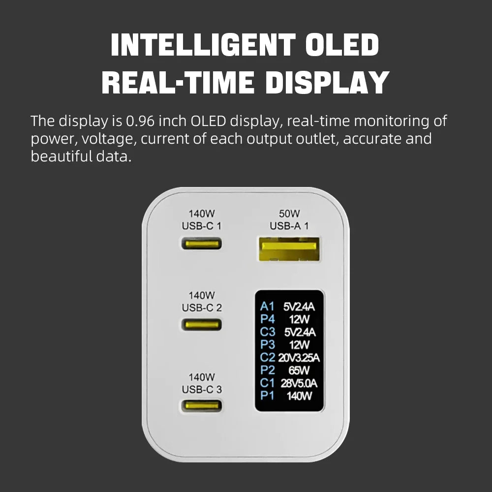 Port 1: C1/C2/C3/USB A1 (+SVOOC): 140W/140W/140W/50W