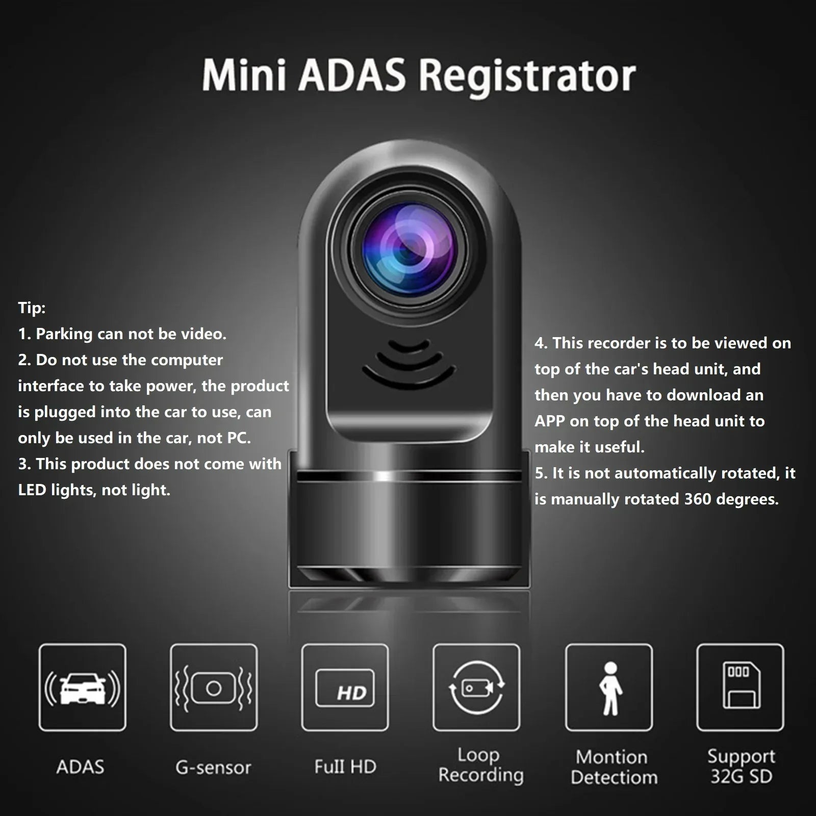 Resolution 1080*720P Car Driving Recorder 360 Degree Rotate 24H Parking Monitor Car DVR HD Camera G-Sensor Dashcam Has ADAS Driver Alert System