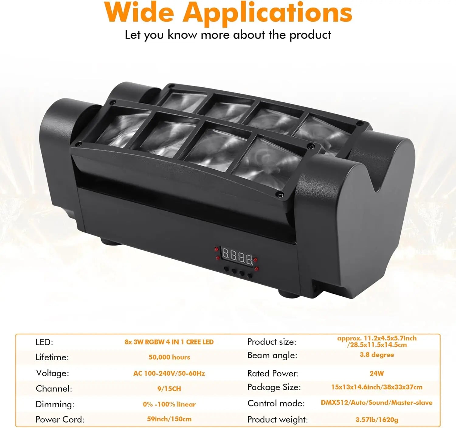 8 Beam Stage Lights with Sound Activated and DMX Moving Head