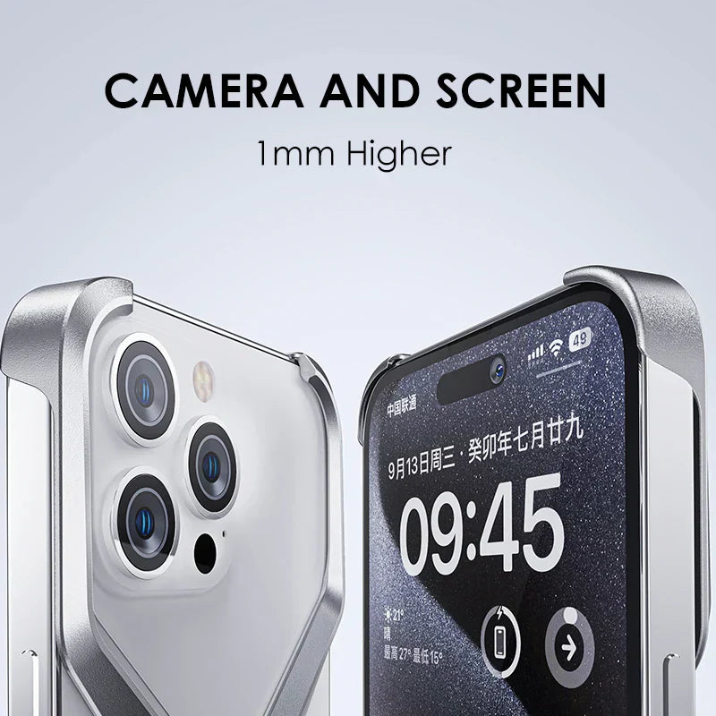 Luxury Aluminum Alloy Rimless Phone Case For iPhone 15 14 13 Pro Max Metal X Type Removable Heat Dissipation Armor Shockproof Cover