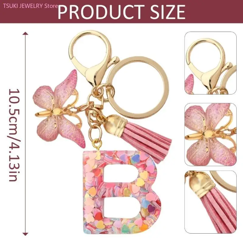 Butterfly Letter Keychain Tassel Design Vibrant Durable Lightweight Gift