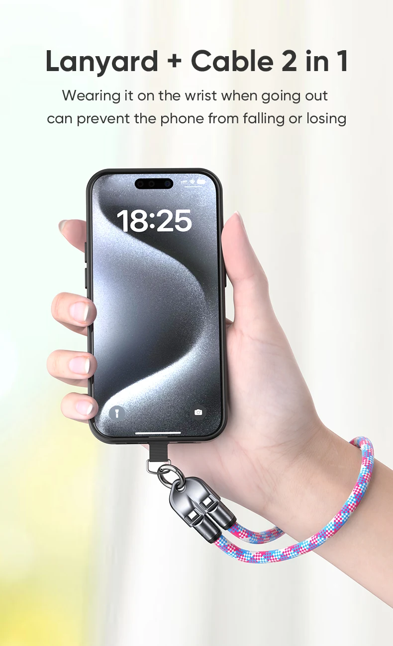 This is a multifunctional creative data cable that can be used as both a data cable and a lanyard to prevent phone loss.