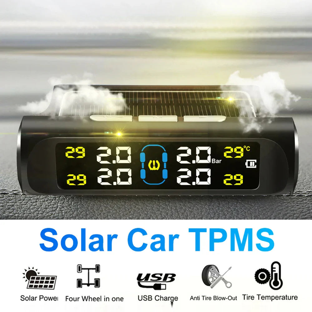 Solar Power TPMS Car Tire Pressure Alarm Monitor System Auto Security Alarm Systems Tyre Pressure Temperature Warning