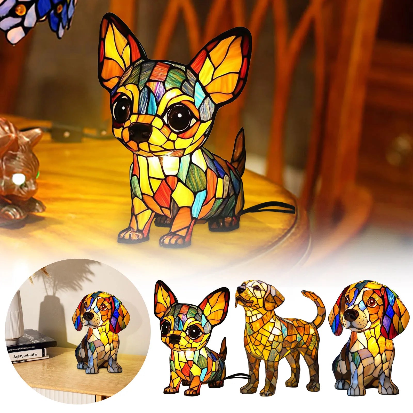 Corgi Lamp And Pug Lamp Dog Series Art Night Light Stained Resin French Tabletop Night Light Cute Pet Dogs Themed LED Table Lamps With Warm Ambient Glow Fun Gift For Do