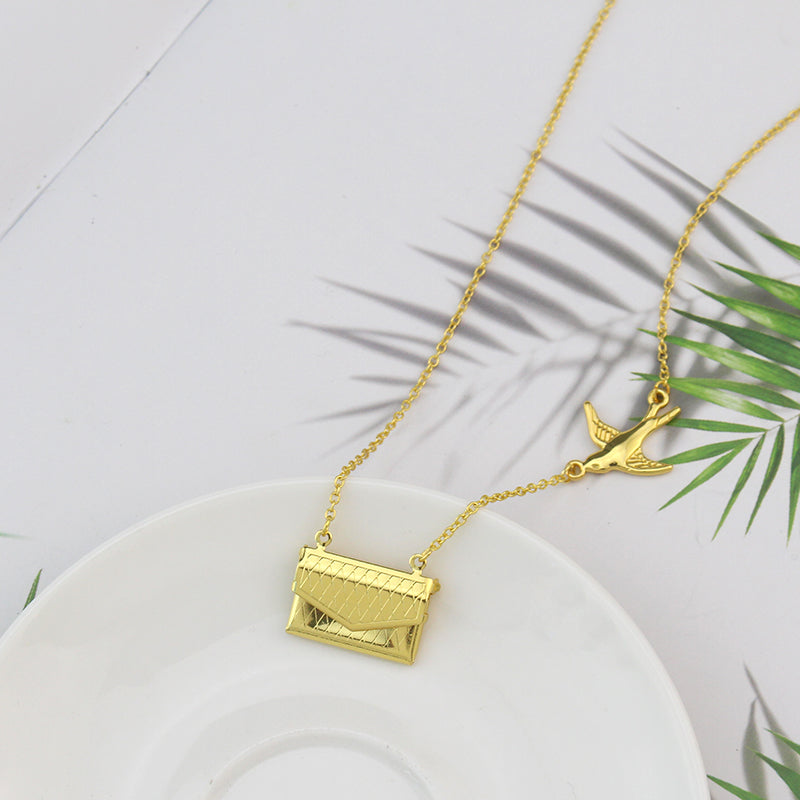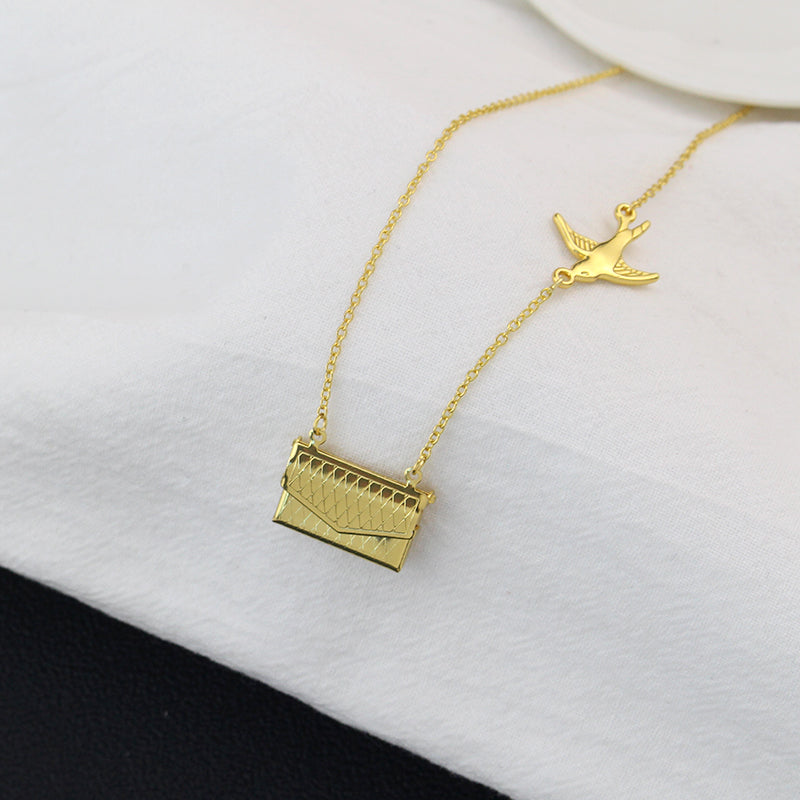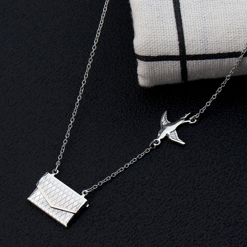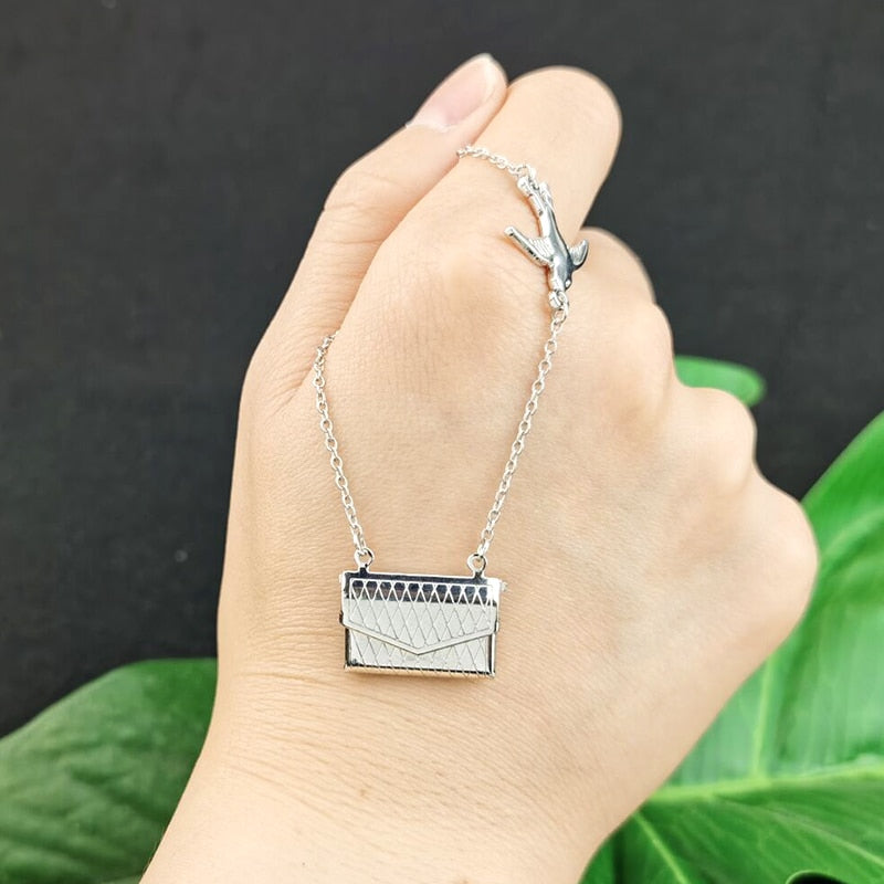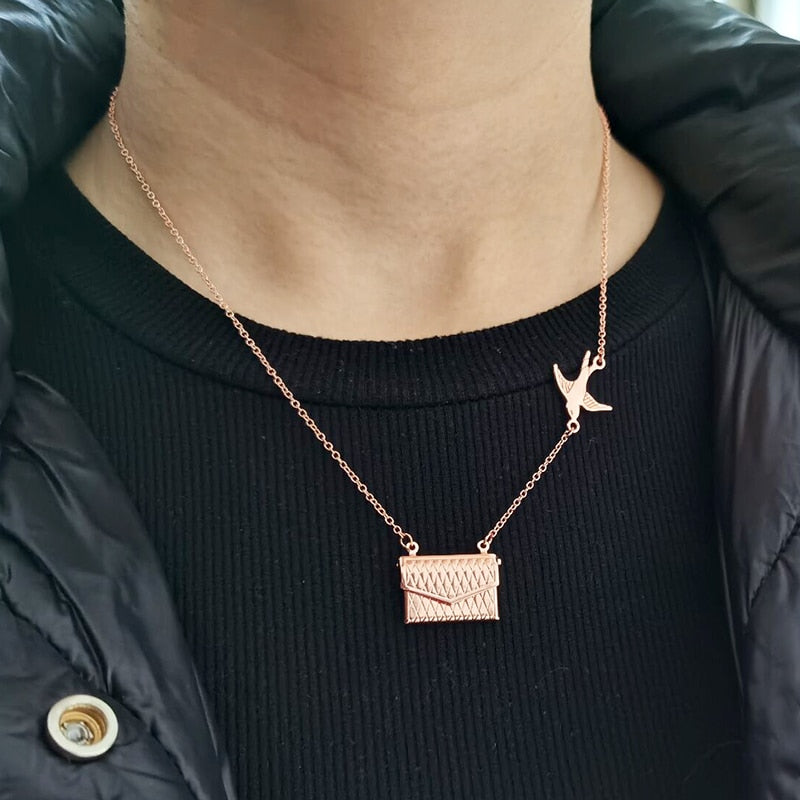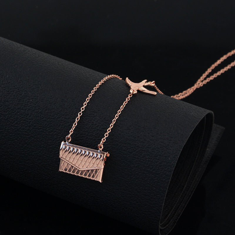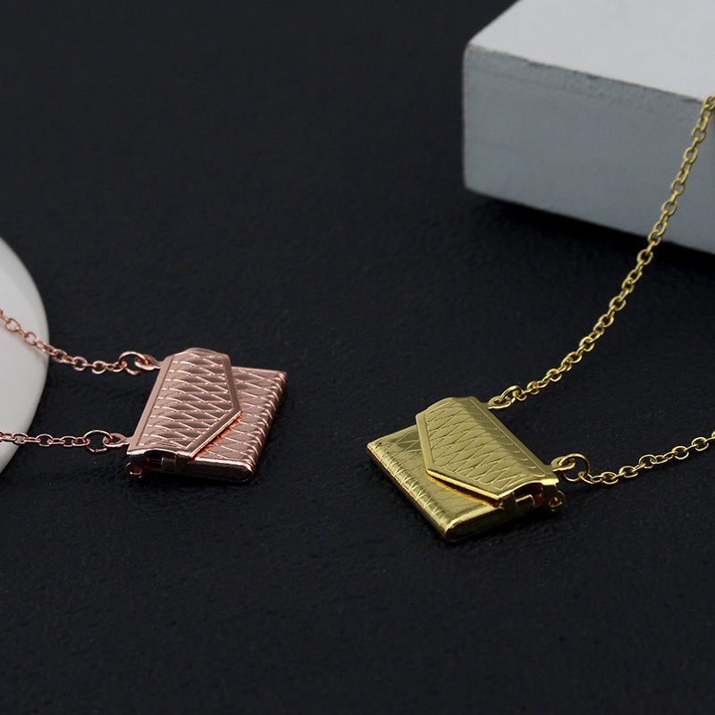 Write any little message and your sweet photo , then place it inside the bag,Engraving Hidden Love letter Secret Message 3D Bag Locket Necklace