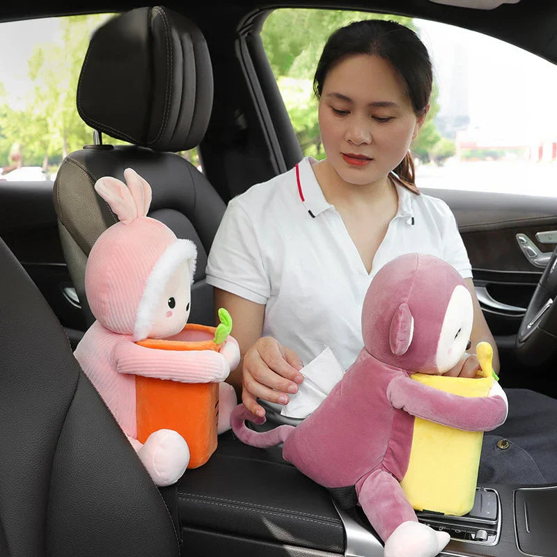 Car tissue box, garbage bin, 2-in-1 creative car armrest box, drawstring box, can love multifunctional car supplies