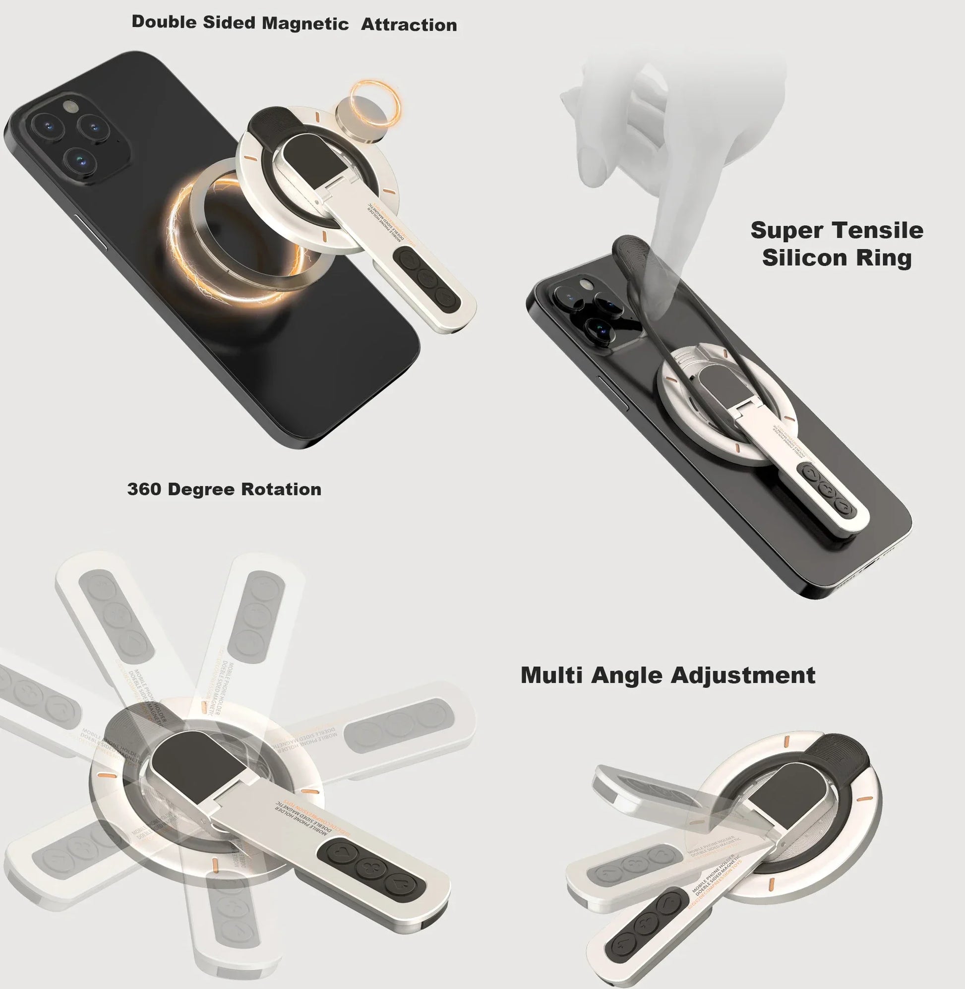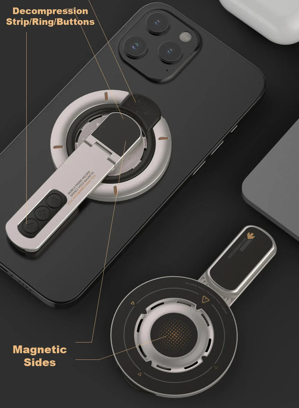 Double-Sided Magnetic Decompression Ring Phone Holder 360° Rotating Silicone Zinc Alloy Ultra-Thin Magnetic Phone Holder
