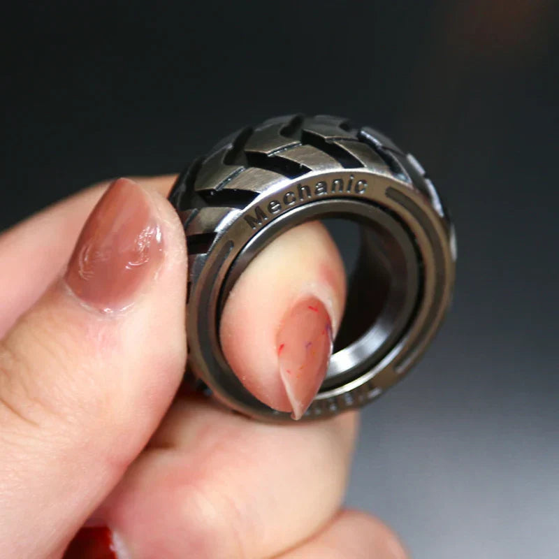 Dual Function Stainless Steel Motorcycle Tire Fidget Ring