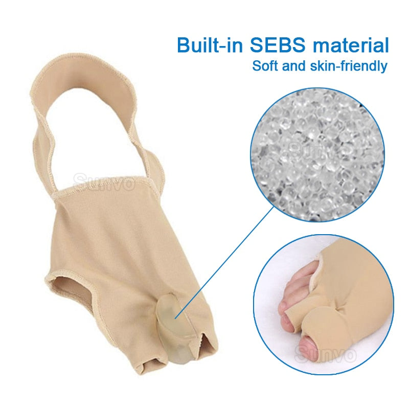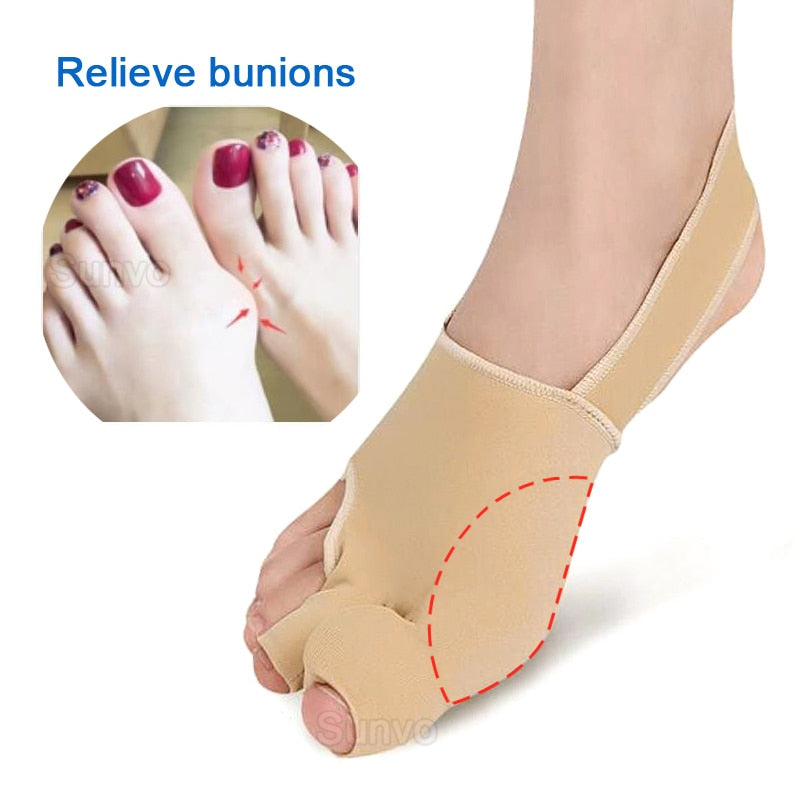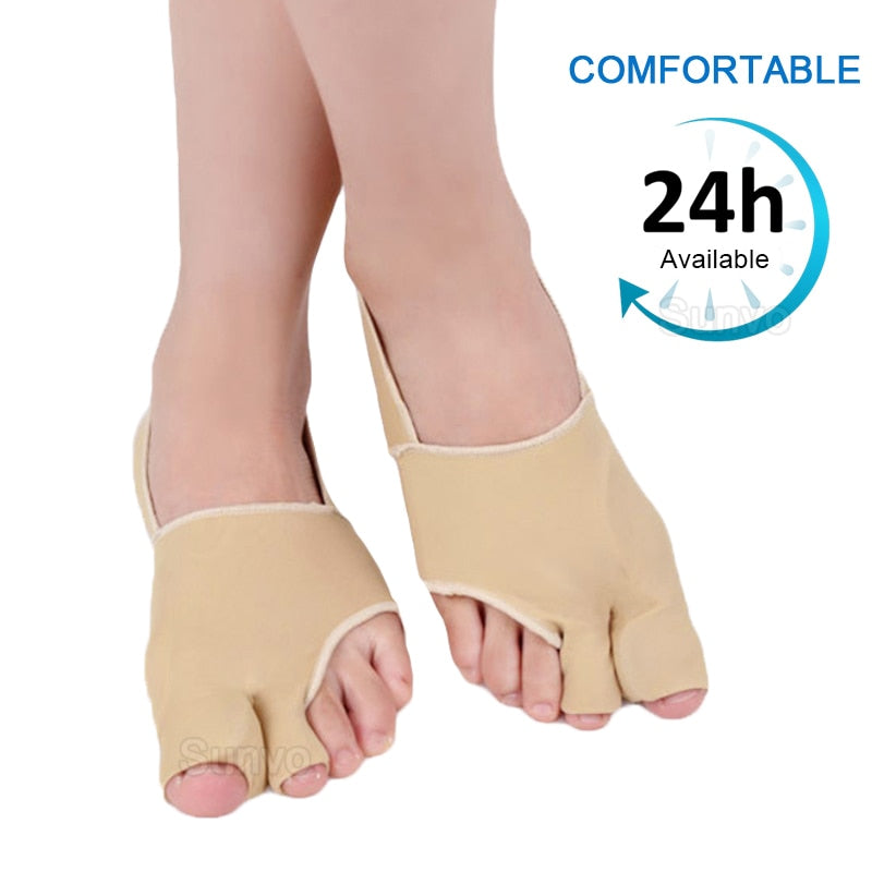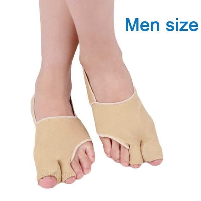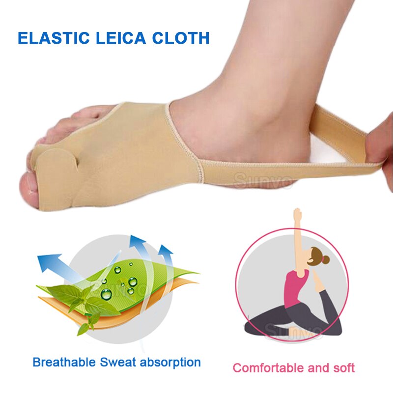 STOP BUNION PAIN This corrector prevents hallux valgus from developing. The built-in silicone bunion corrector developed by the best orthopedists and surgeons, It provides corrective and relieves hallux valgus pain.It will not fall off easily. COMFORTABLE ALL DAY Use these bunion pads at any time! The design of bunion corrector allows your toes and feet to move in a natural way while maintaining their alignment. PERFECT FOR DAILY WEAR The valgus corrector is secured by an external elastic strap, the splint will not slip or bunch and can easily be worn with socks and most styles of shoes. FLEXIBLE MATERIAL This toe corrector is fully adjustable and breathable, it is made with a soft and stretchy cloth material for a comfortable fit throughout the day. Material: Lycra SEBS 1 Pair x Elastic Two Toes Bunion Correctors