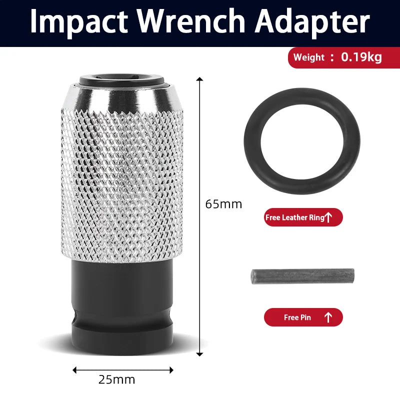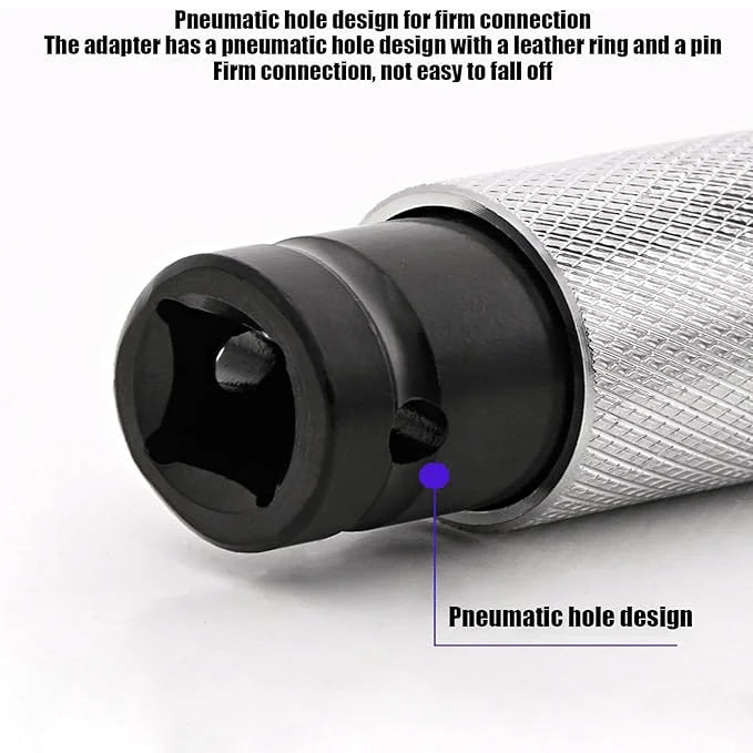 Assuring stable performance, this Impact Wrench Adapter provides continuous support for high-intensity tasks. Its unique design features a secure connection with a leather ring and pin, maintaining stability during long-term use. With a pneumatic hole design, it ensures a solid grip and constant work support.