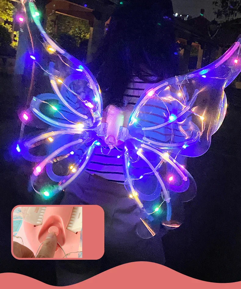 Elegant Style with LED light: The special material allows the wings to reflect colorful light during the day, and the LED design adds more luminescence to your little princess easily and lets her become the focus of the crowd at night.