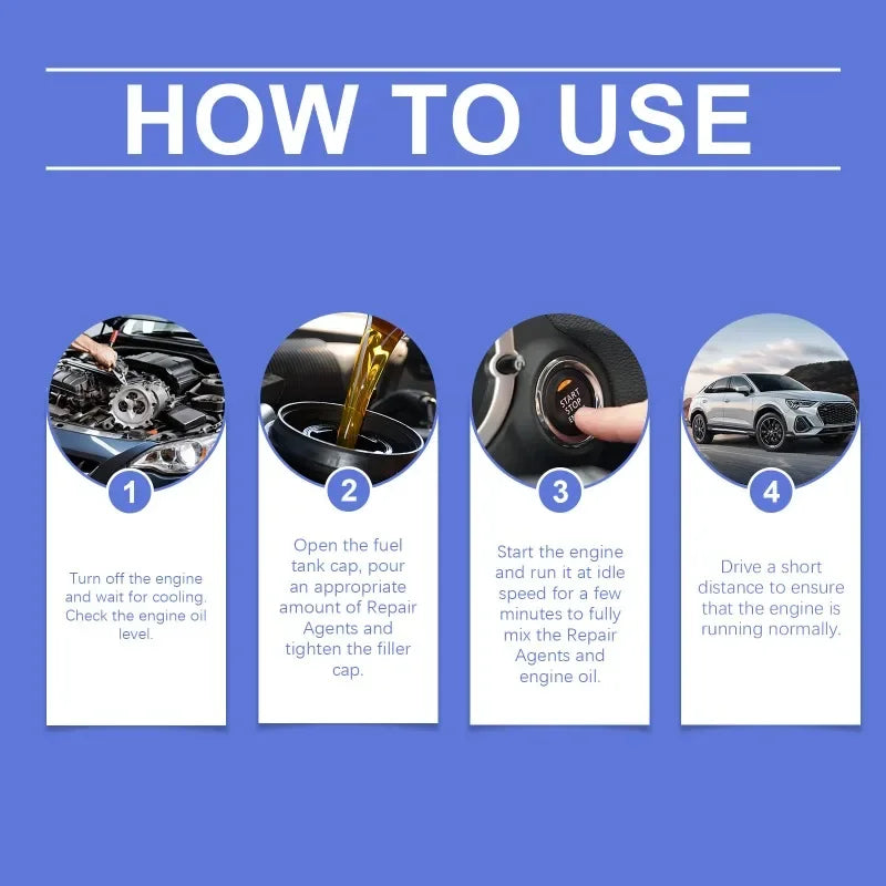 Step 1: Start the car and idle for 10 minutes, then turn it off and add the productStep 2: After adding the product, run the engine for 10 minutes or drive normally.