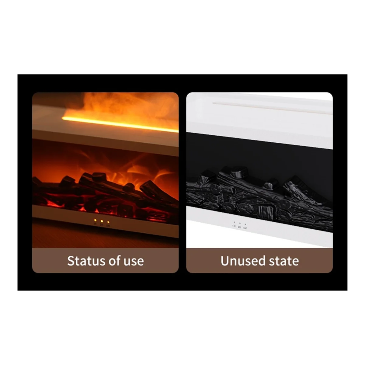 Romantic healing love infinite Flame Fireplace Aromatherapy Diffuser. It is both "flame" and water Fine water mist, just the right amount of moisture.Fireplace shape "Creating life inspiration" Burning firewood Combined with fine mist. Essential oil aromatherapy blessing Enjoy the fragrance of the whole house Add some aromatherapy and wander with the fragrance. Fine and heavy fog Like a gentle breeze from the noist sea Nano atomization technology, non wettable. Smart remote control Enjoy moisturizing while lying down No need to move, Remote control with one button. Colour:Black Material:Plastic Package Contents: 1x Aromatherapy machine 1x Power cord 1x Remote control 1x Englsih User Manual Only the above package content, other products are not included. Note: Light reflection and different displays may cause the color of the item in the picture a little different from the real thing. Th