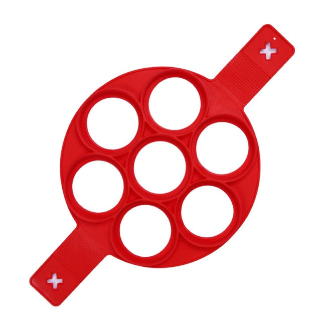 Flip Cooker - the fast, easy and fun way to make perfect pancakes every time! The Flip Cooker flips multiple pancakes at the same time and without the mess. Just place in preheated pan add batter and let them brown then simply lift and flip. The secret is the non-stick, silicone ring. The side holds the batter to the perfect shape for even cooking, while the flat bottom ring supports everything. Stovetop safe silicone while the easy flip grips keep hand away from the heat. Dishwasher safe. Also great for eggs, omelets, hash browns and so much more!