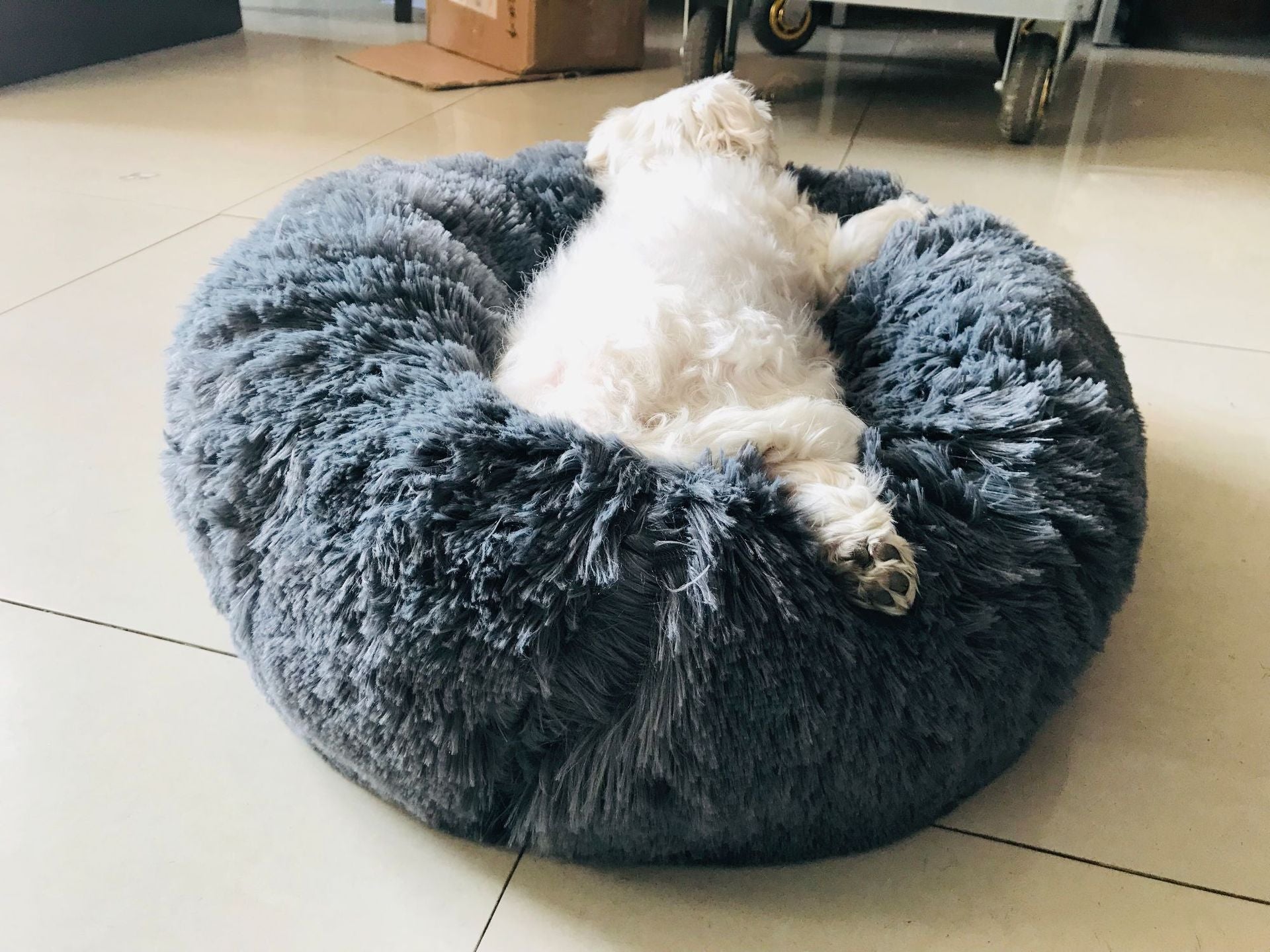 - Soft & Comfy - Made of premium faux shag fur. Cozy, furry and soft plush, a self-warming fluffy calming dog bed. The dog donut cuddler made of long plush of the surface, comfortable and soft that your dog would like stay in it most of the day.