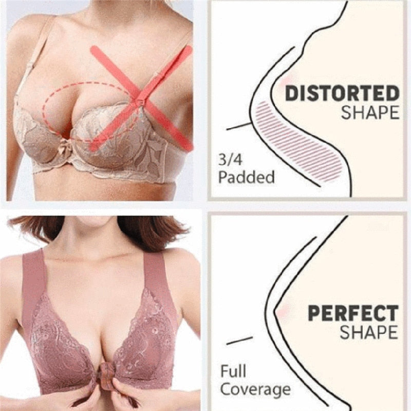 The design of 5D seamed cups, wide side wings, strong cushioned shoulder straps, and U-shape back panel ensures maximum support against sagging while smoothing back bulges and correcting armpit fats for a flattering silhouette.