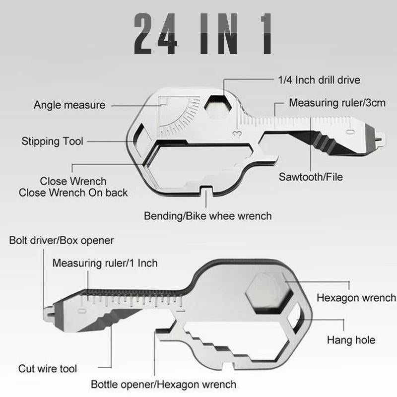 Geary 24-in-1 Multifunctional Durable Stainless Steel Key Shaped Pocket Tool