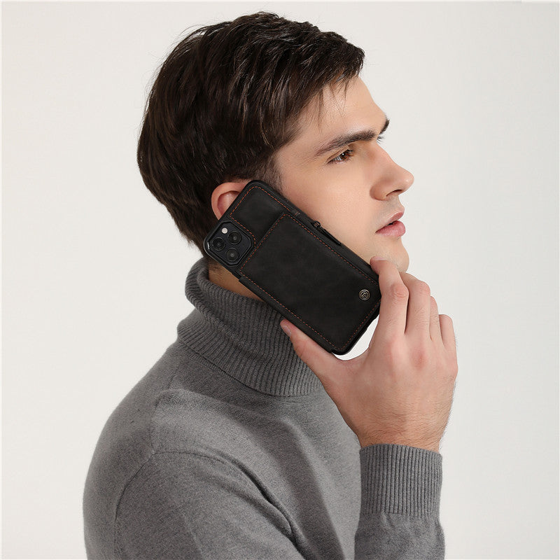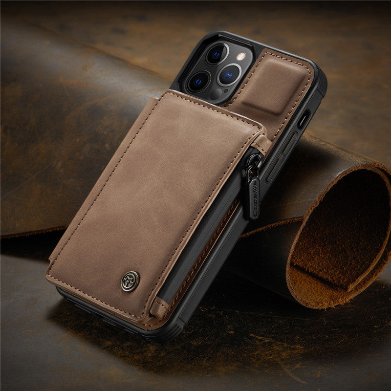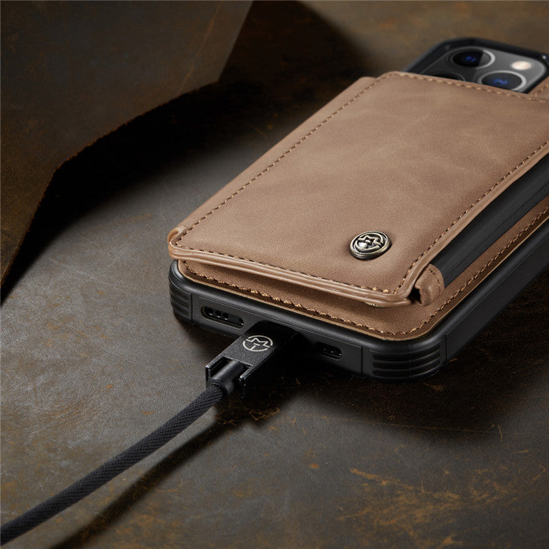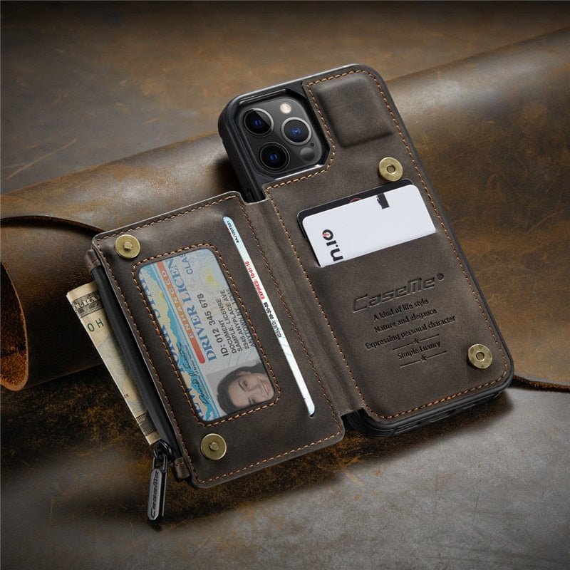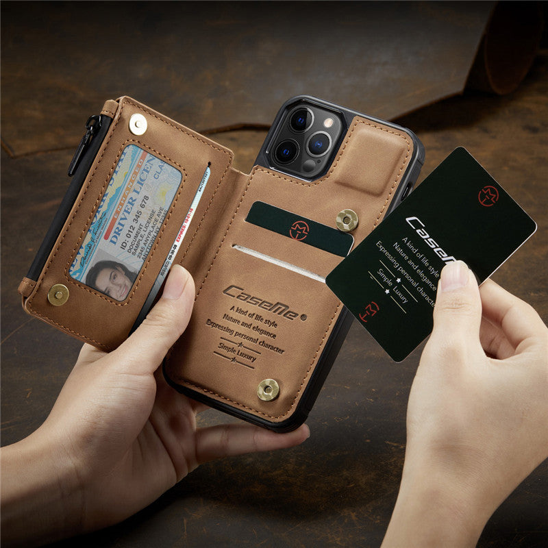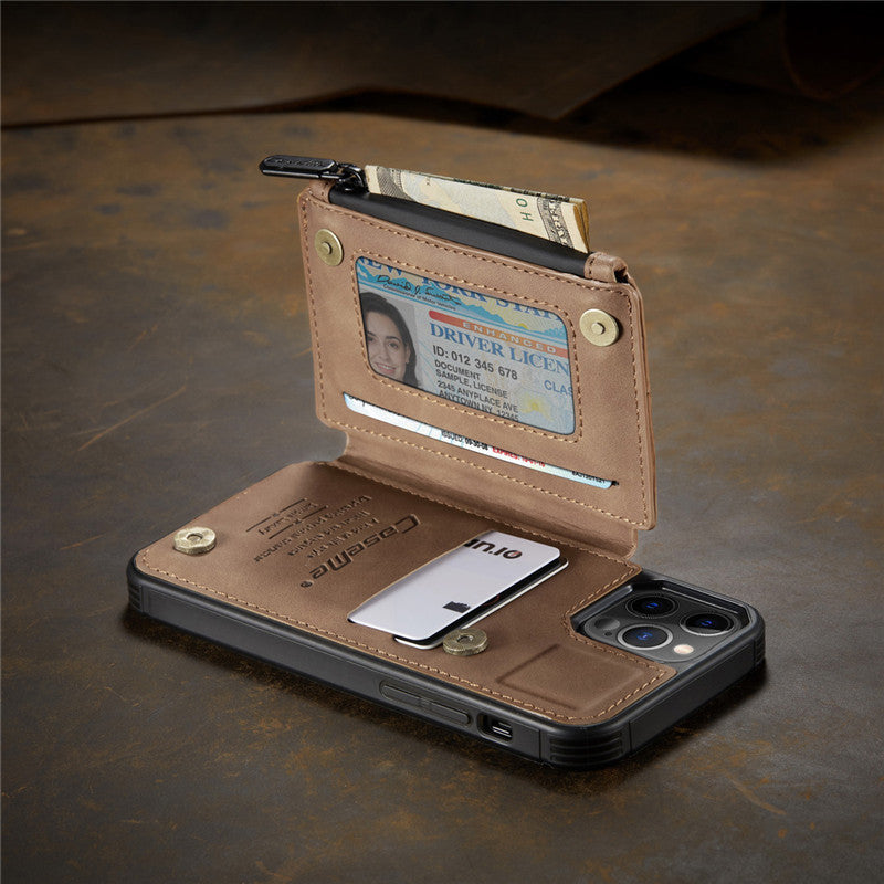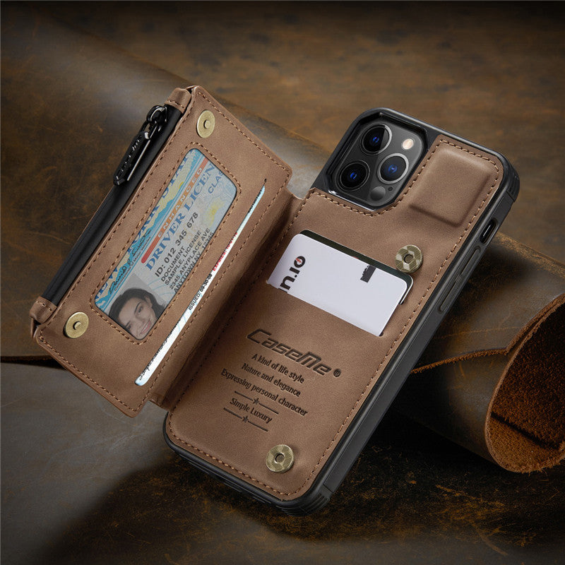 Protect your iPhone in style with a slim and functional shockproof leather wallet case.