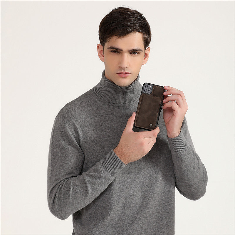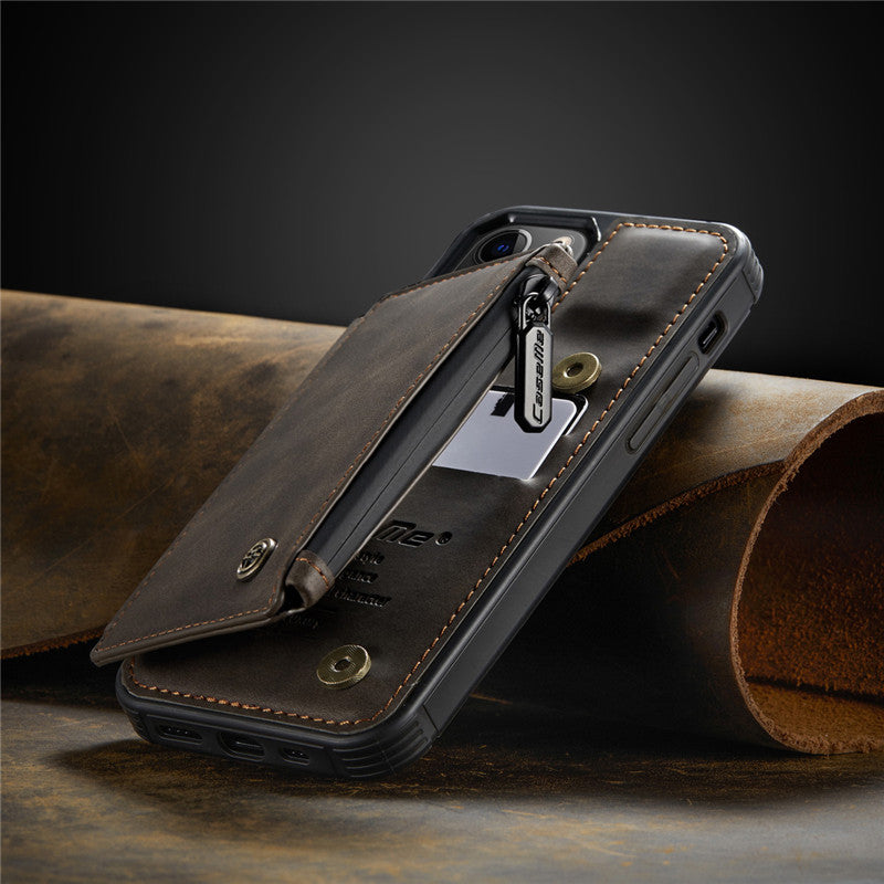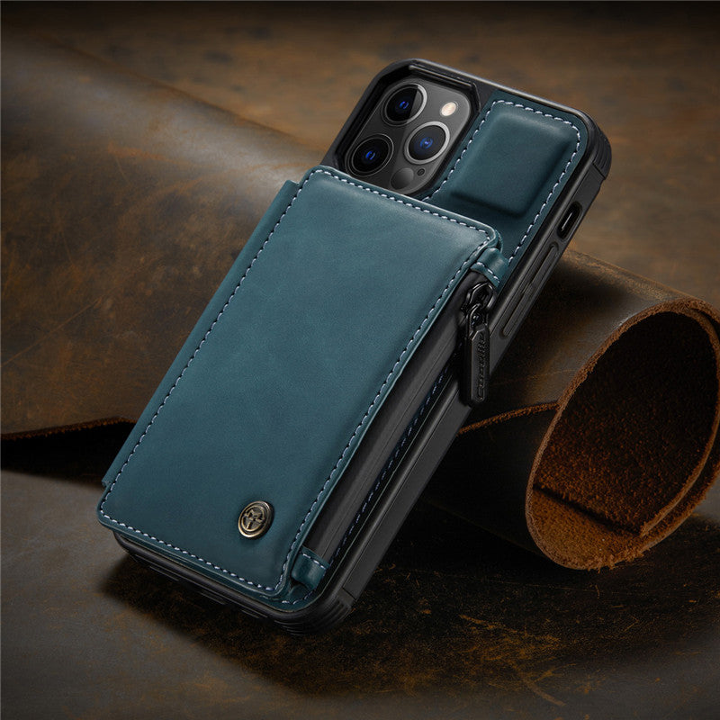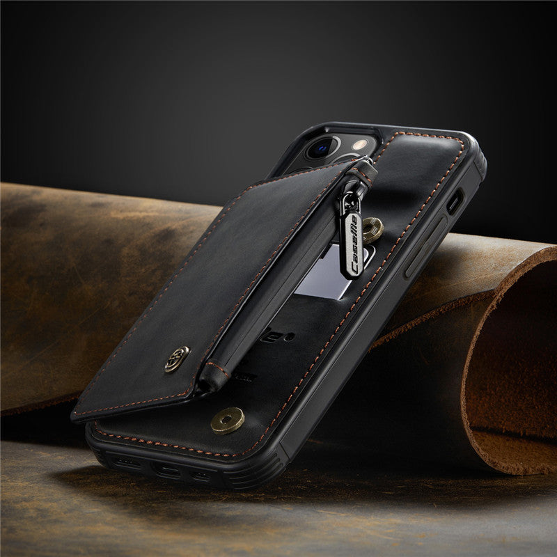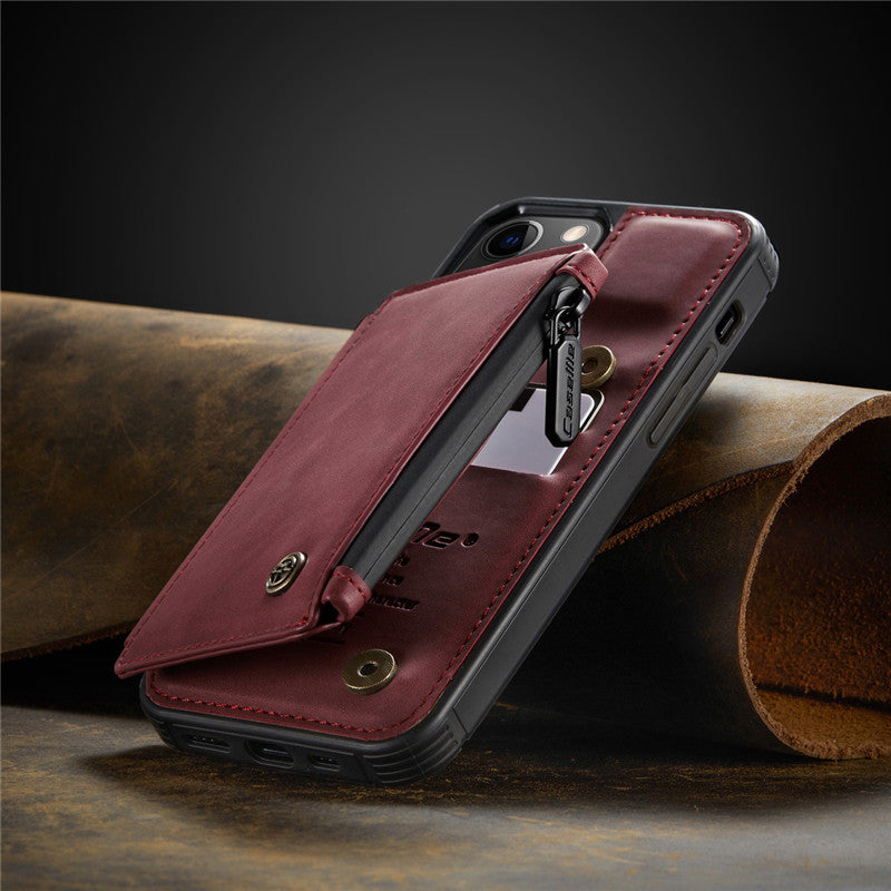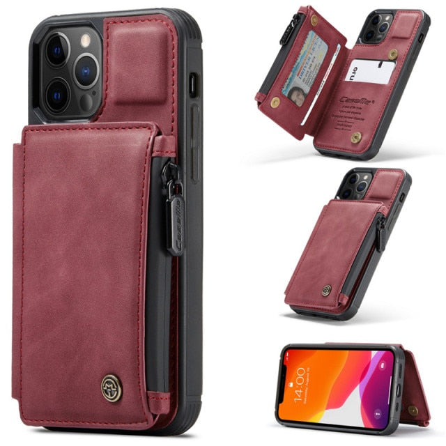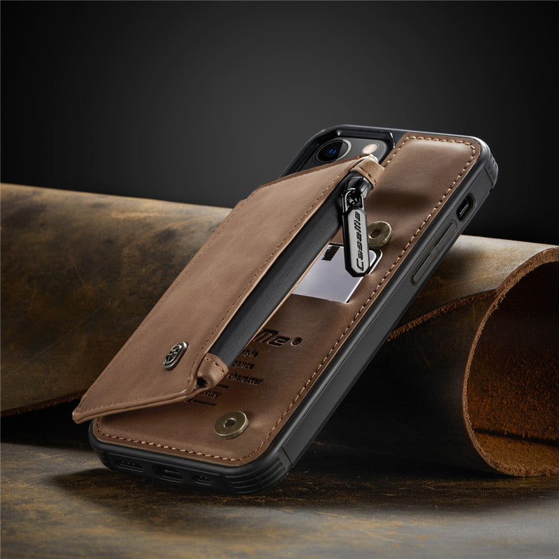 Protect your iPhone in style with a slim and functional shockproof leather wallet case.