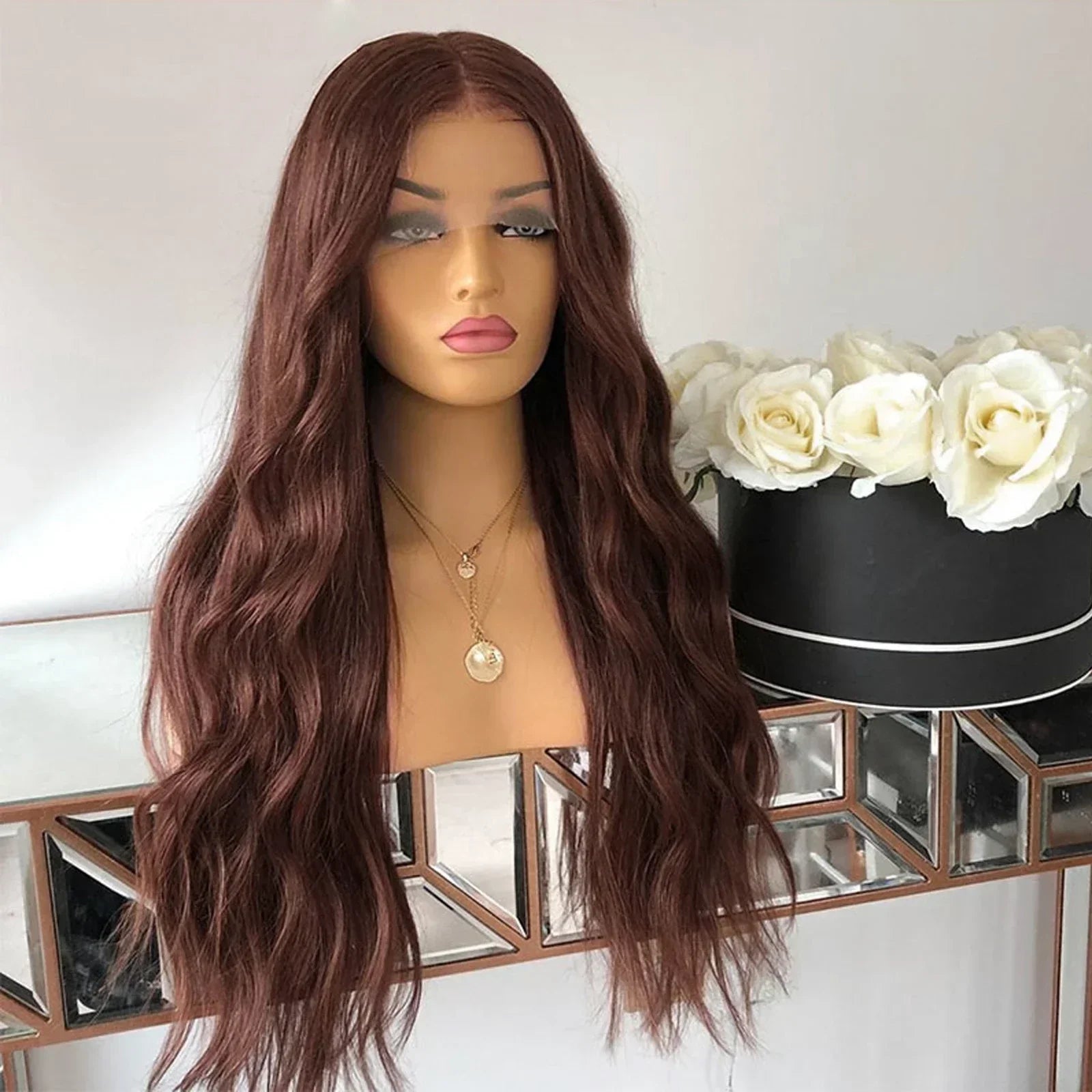 Glueless Brown Long Hair Brazilian Body Wavy Wigs