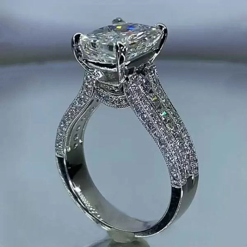 Handmade Radiant Cut White Sapphire 925 Sterling Silver Engagement Ring