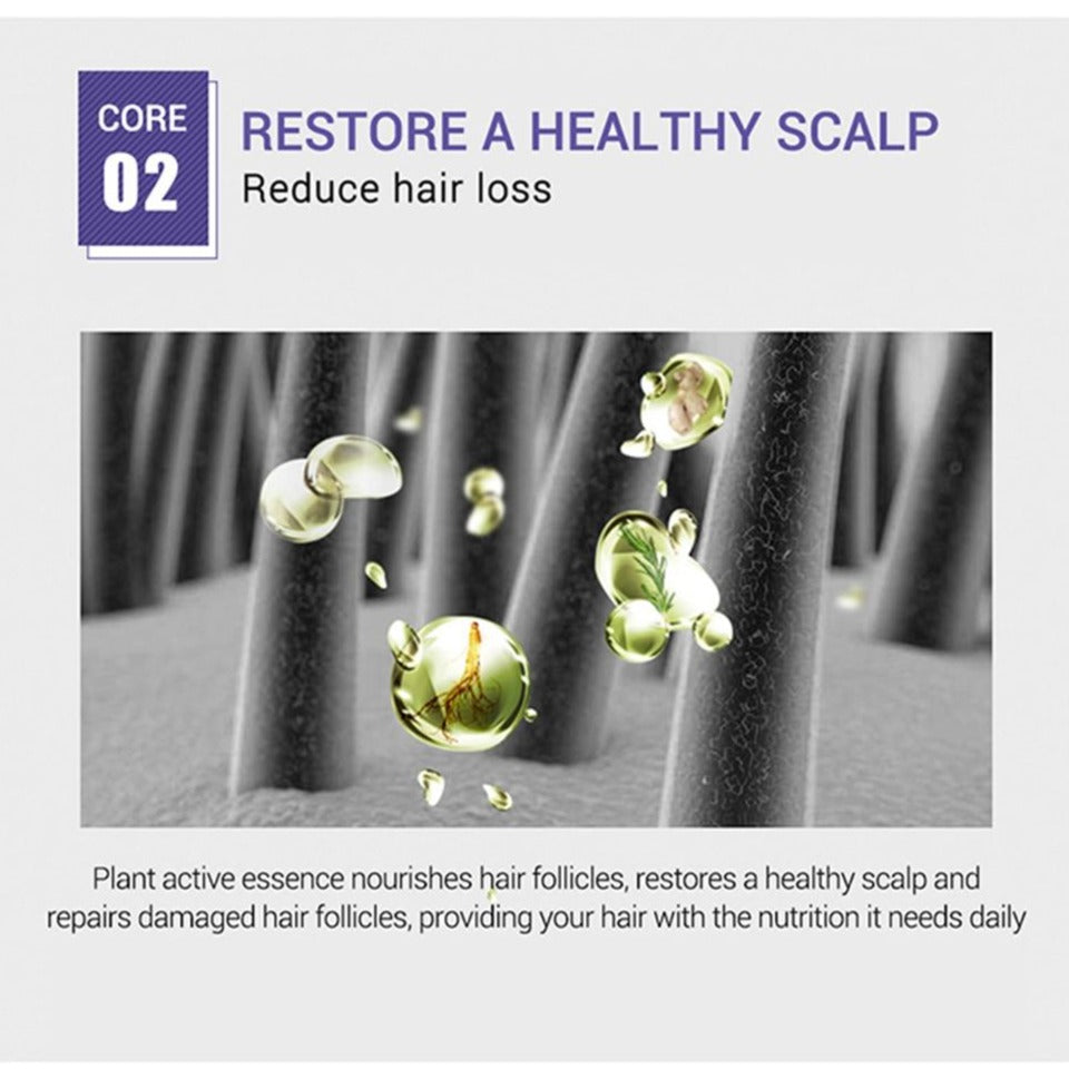 Loaded with a herbal blend of scalp rejuvenating ingredients - platycladus orientalis, angelicae sinensis & polygonum multiflorum extract – to boost hair growth, it balances oily scalp and ceases hair loss.