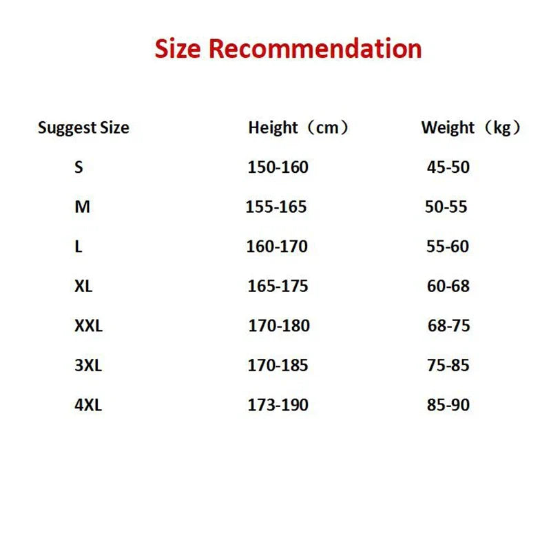 Asian Size US/UK European size Suitable Height(cm) Suitable Weight(kg)