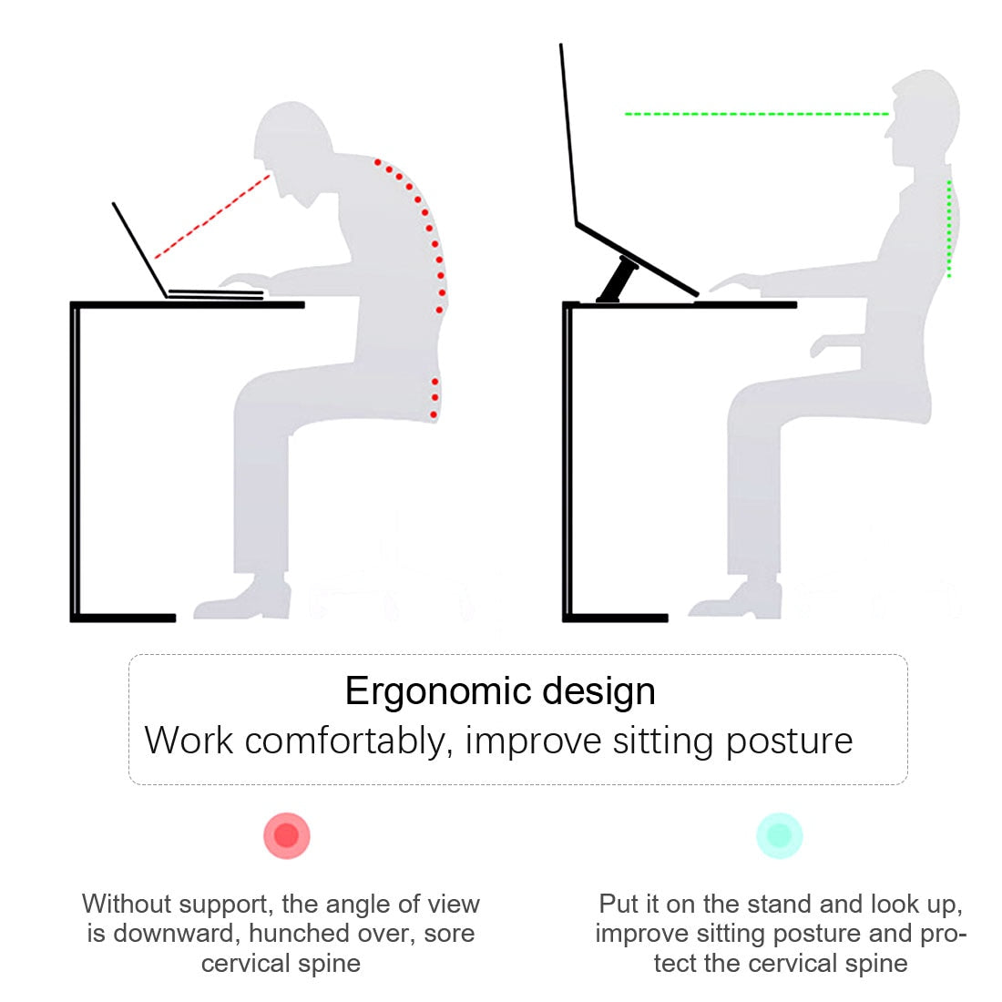 - [Invisible design]: The laptop and tablet stand provide 2 levels of adjustable height, which can be adjusted to a comfortable operating angle and height according to your actual needs. The ergonomic design makes viewing and typing easier and reduces pain in the neck, shoulders, and spine.