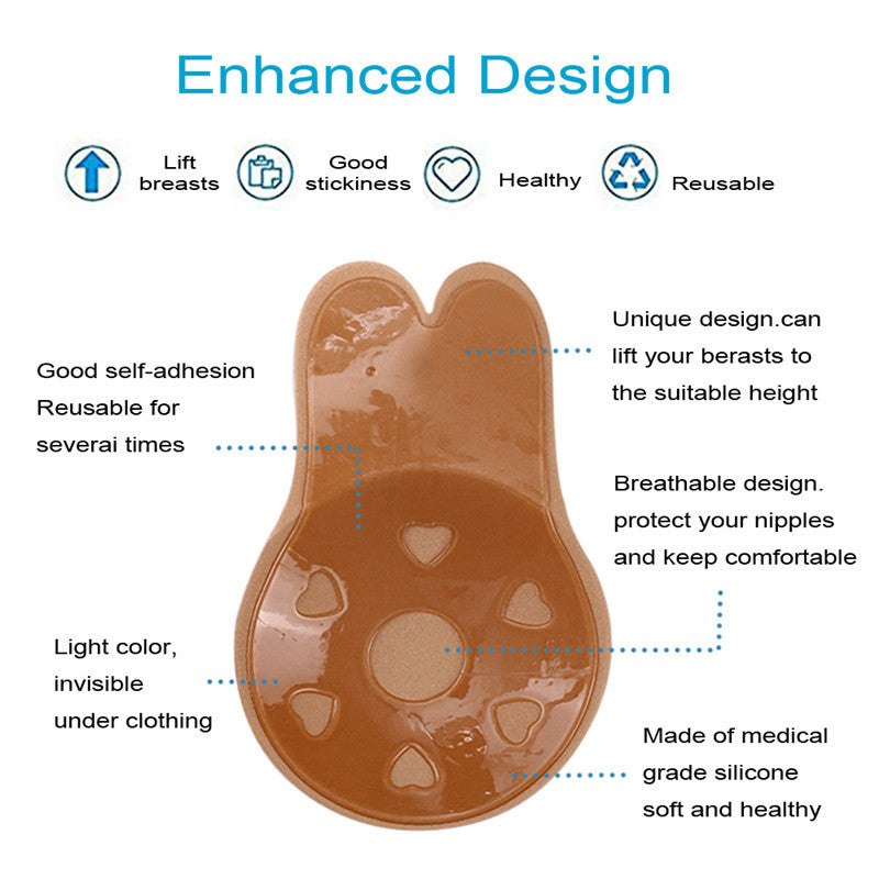 Gives your breasts the perfect lift, shape, and support, just like a regular bra, effortlessly! This Invisible Lifting Bra adheres comfortably to your breasts to give them an instant lift and firmness.