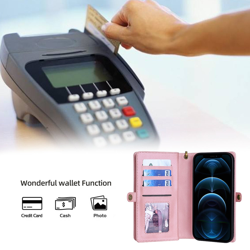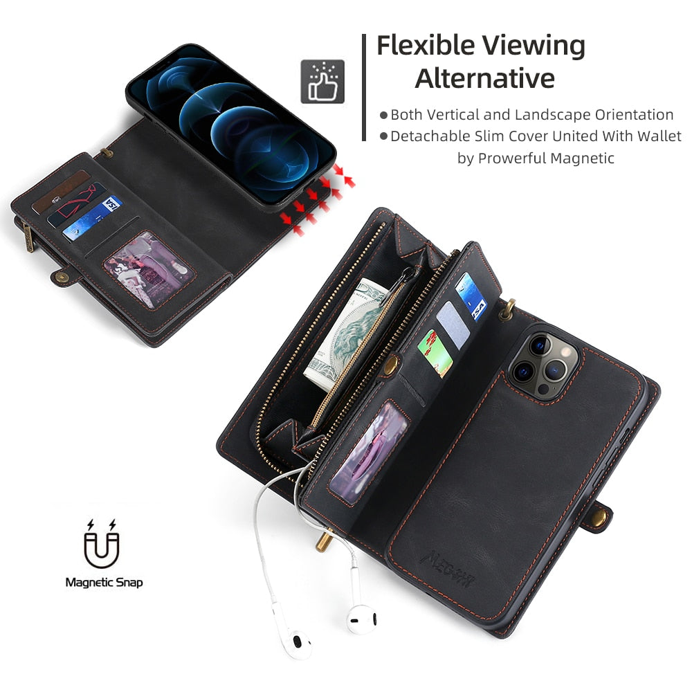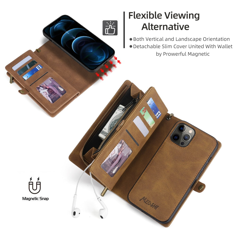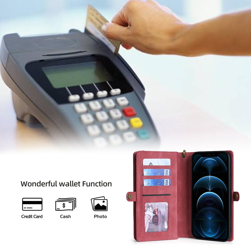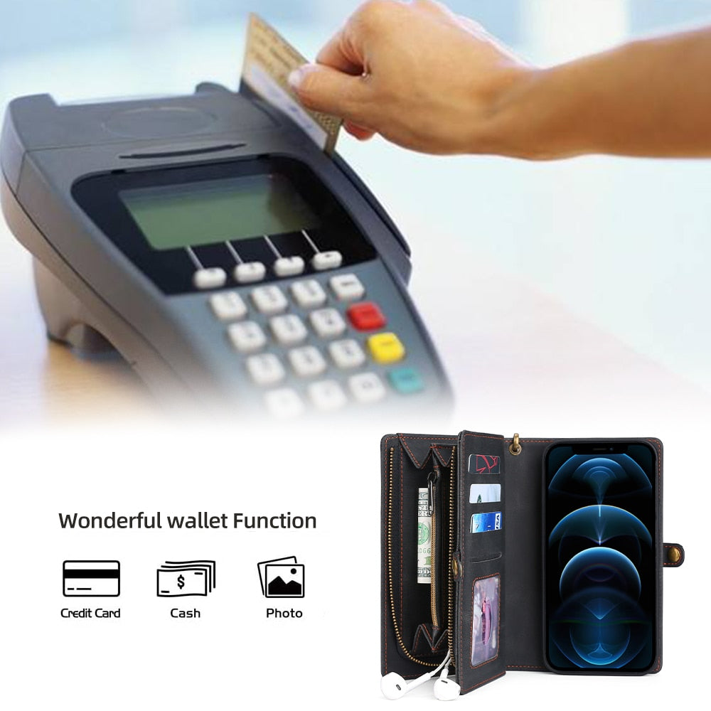 Protect your iPhone in style with a slim and functional shockproof leather wallet case.