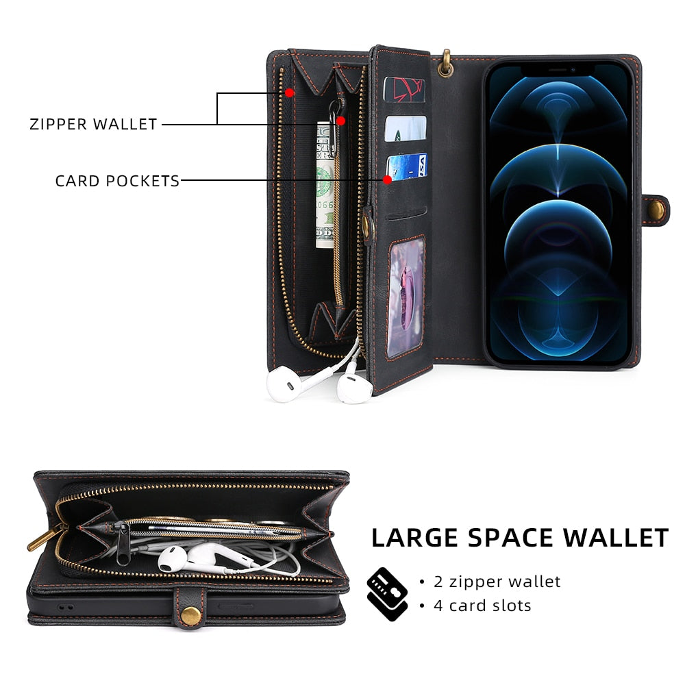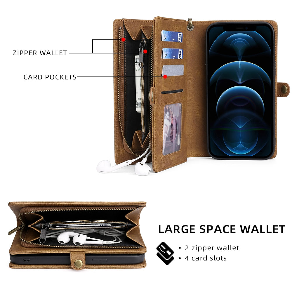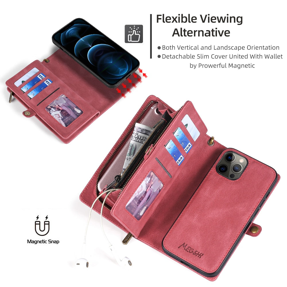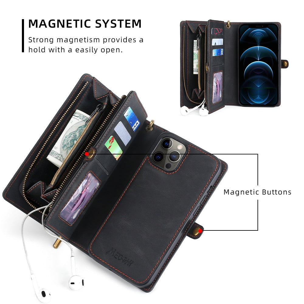 Protect your iPhone in style with a slim and functional shockproof leather wallet case.