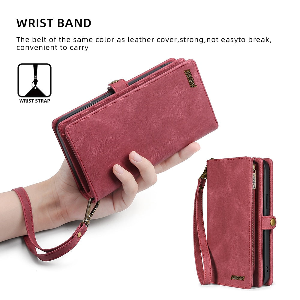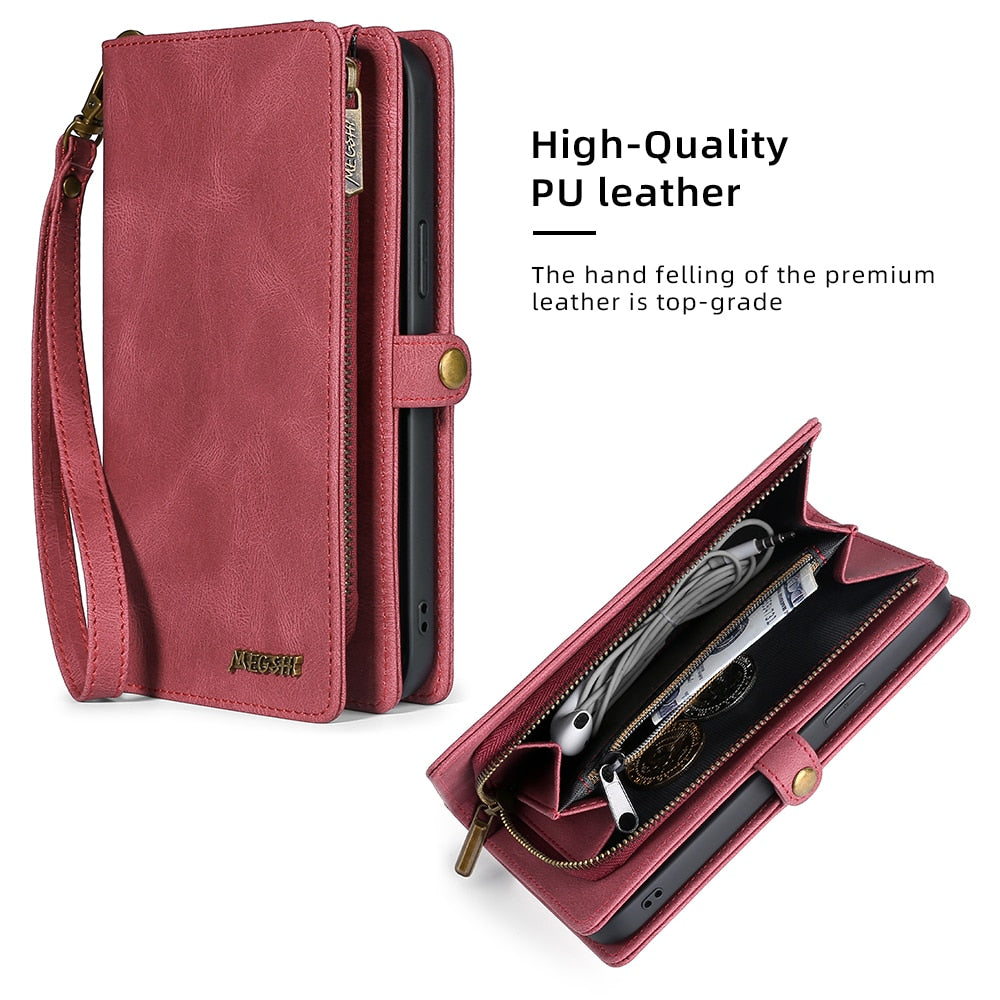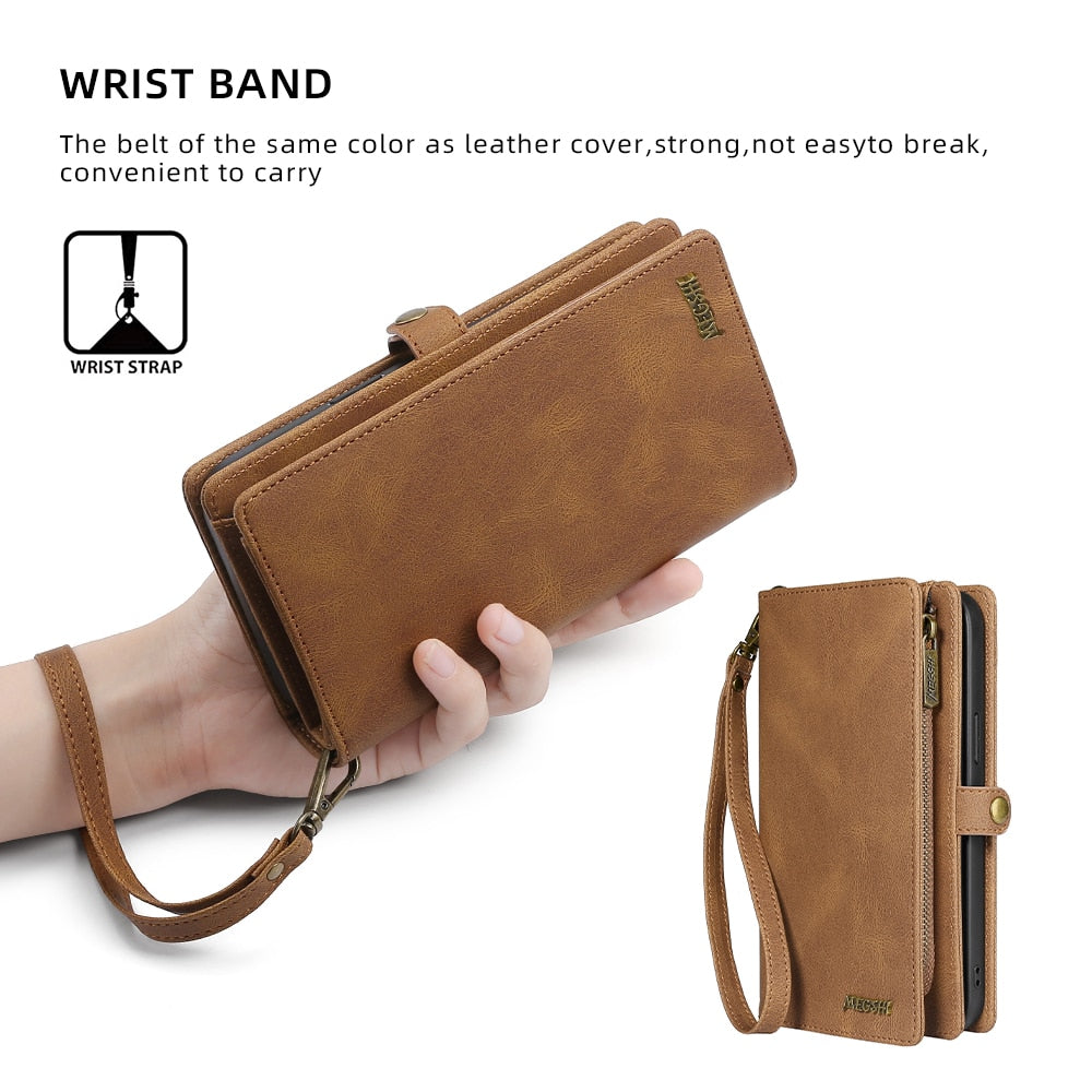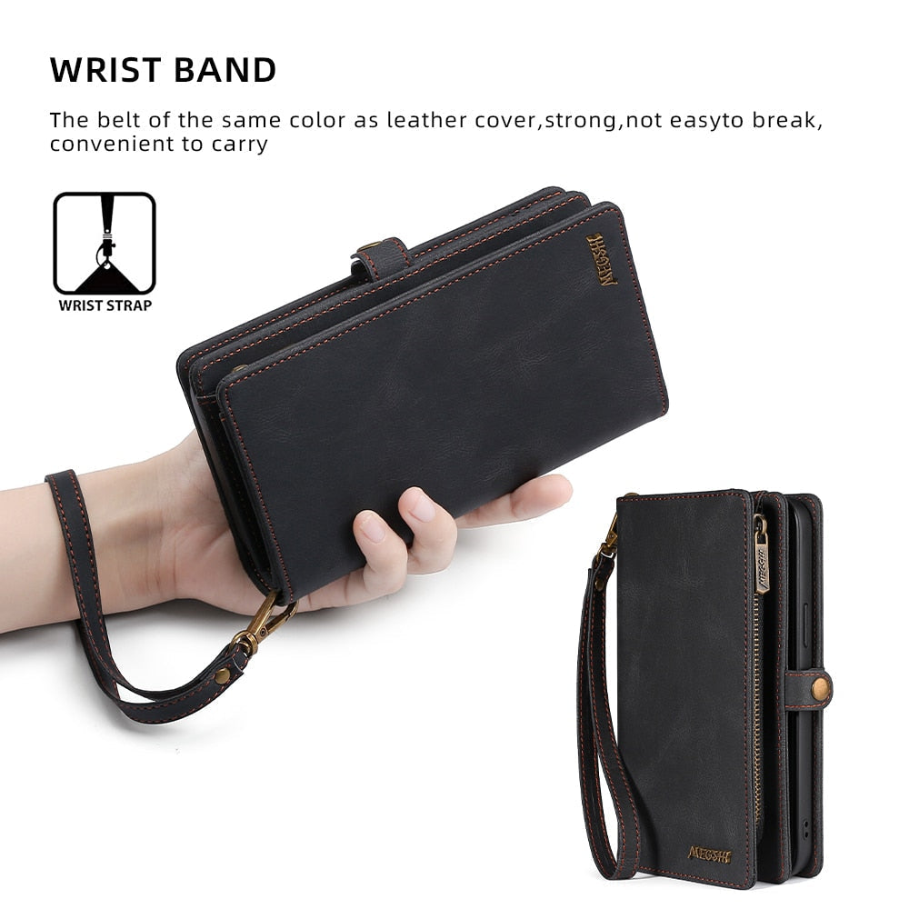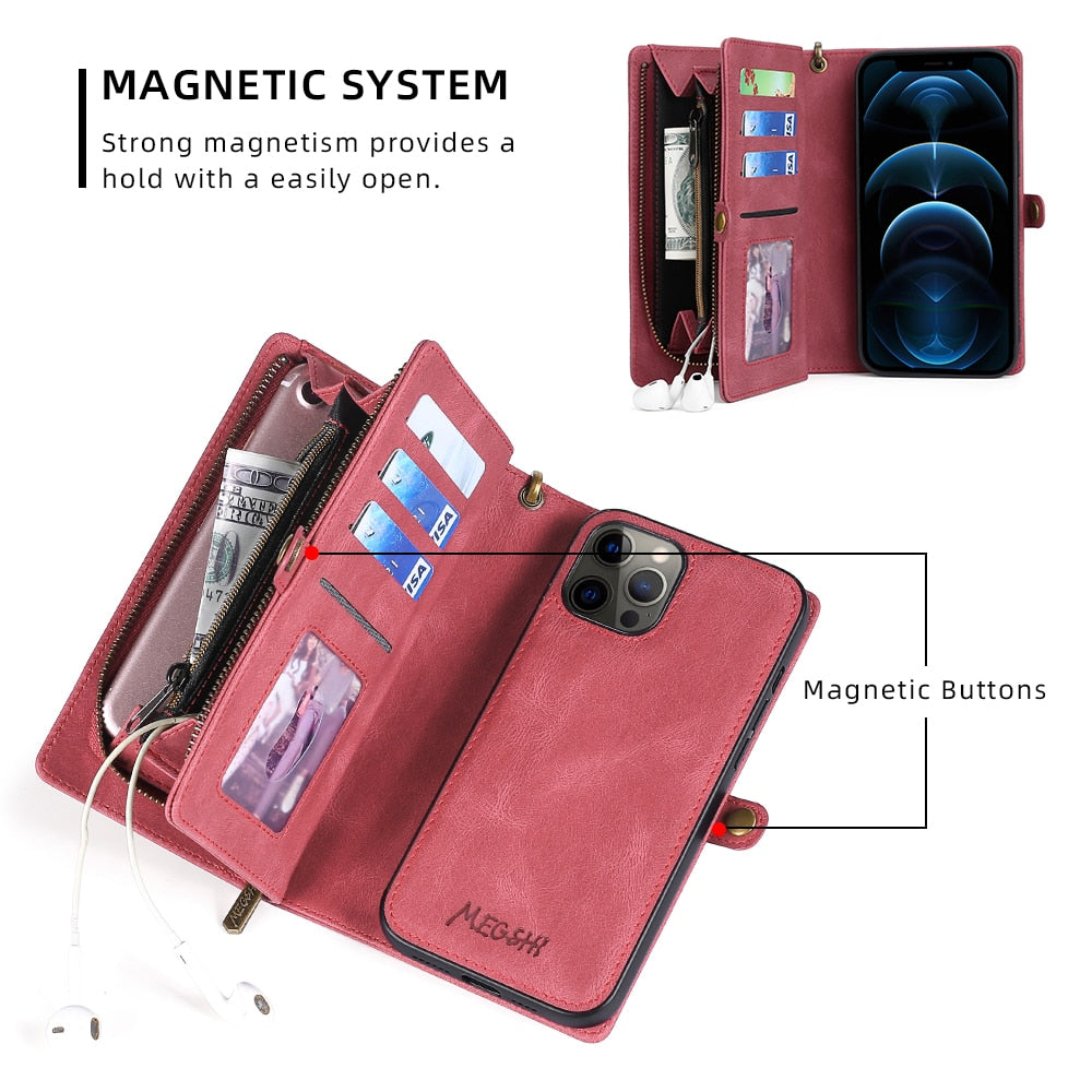 Protect your iPhone in style with a slim and functional shockproof leather wallet case.