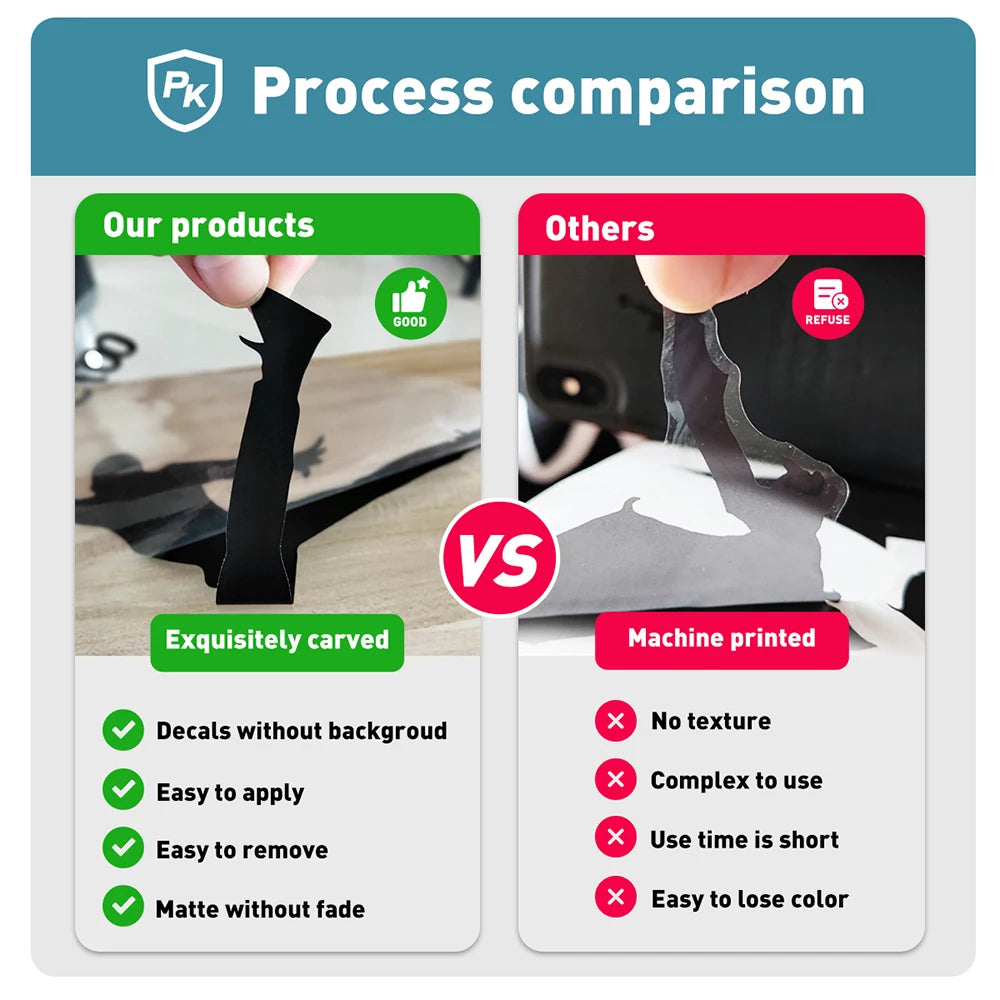 We use high quality matte vinyl, non-toxic , environment , not lose quality overtime like printed decals.