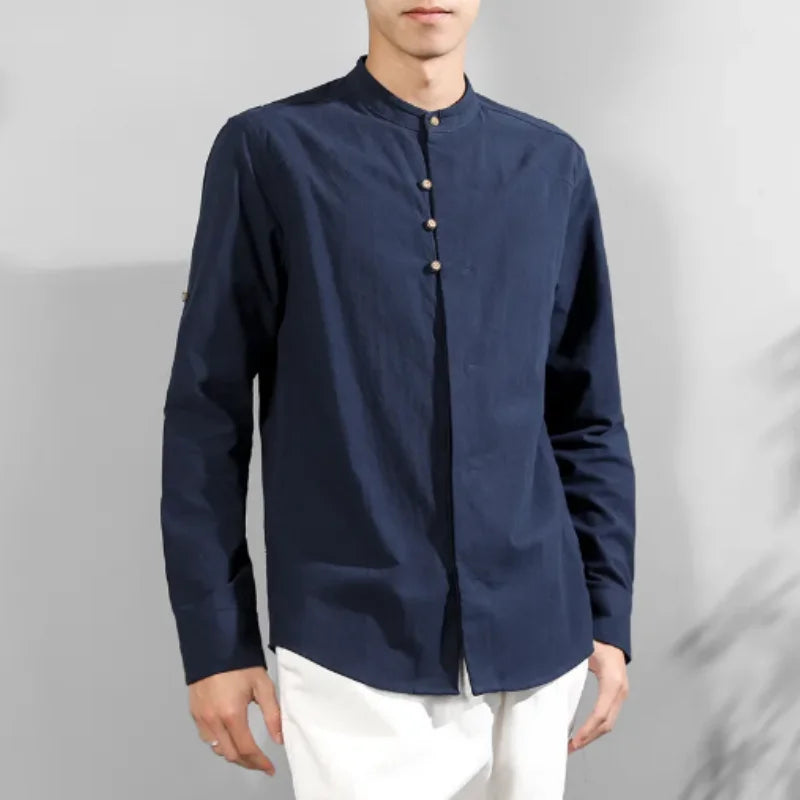 The Harajuku Stand Collar Long Sleeve Slim Fit Solid Color Male Casual Breathable Classical Tops is tailored for the modern man who values both style and comfort. The blend of linen and cotton offers a unique texture and breathability, making it an ideal choice for those who appreciate a lightweight long sleeve shirt. Whether you're looking for a male basic to add to your wardrobe or a versatile piece to elevate your daily look, this shirt is sure to become a staple in your collection.