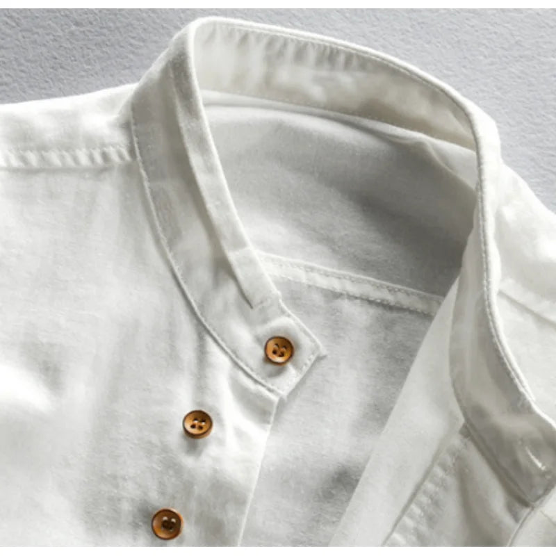 Men Linen Cotton Shirt Japan & Korean Style Long Sleeve Stand Collar Tops Harajuku Casual Slim Fit Men Shirt Outwear M-7XL