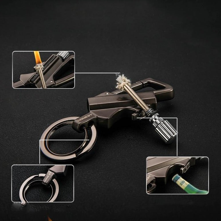 Our multi-purpose keychain flint fire starter is made from durable zinc-alloy & steel. It was designed with high-exposure outdoor activities in mind like hiking, camping, hunting & more. It's made to last in the toughest of conditions, rain or shine. It is 100% waterproof with an O-ring sealing to safely store lighter fluid.