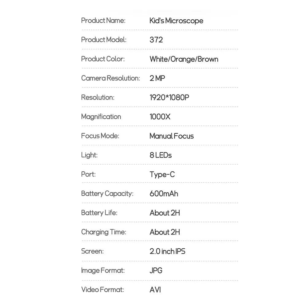 High-Definition Viewing Screen: 2-inch high-definition viewing screen with vibrant and rich colors, allowing children to easily explore the microscopic world, providing a clearer and more intuitive observation experience.