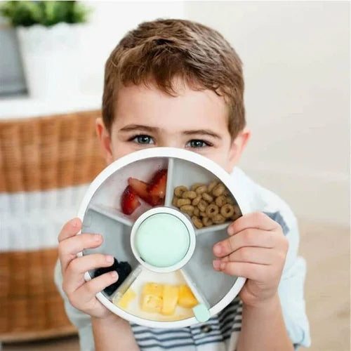 2.5 snacking compartments with interactive button.It combines your snack bowls and cups into one light-weight, easy to use.