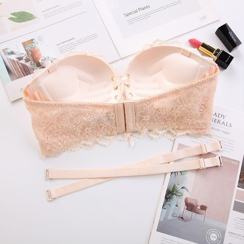 With plush, lifting cups, the Lace-up Strapless provides a stunning pushup. The beautiful lacing also allows for an optional additional boost!