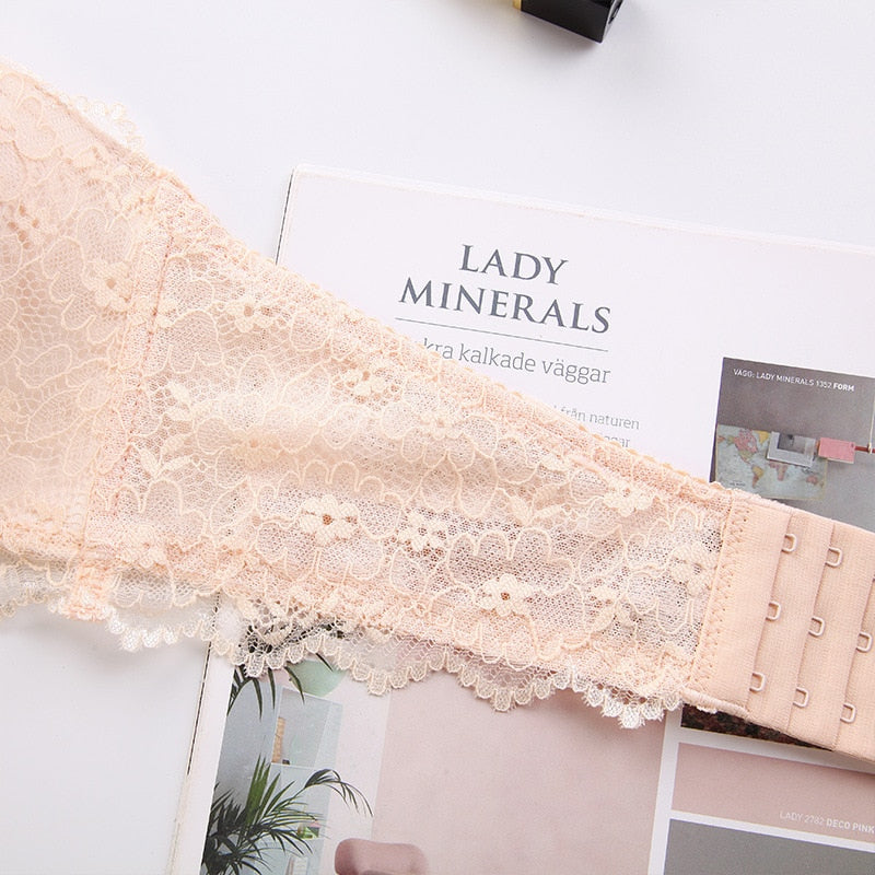 Feel delicate and feminine in the Lace-up Strapless with beautiful floral lace that lays gently against skin with satin ribbon corset lacing.