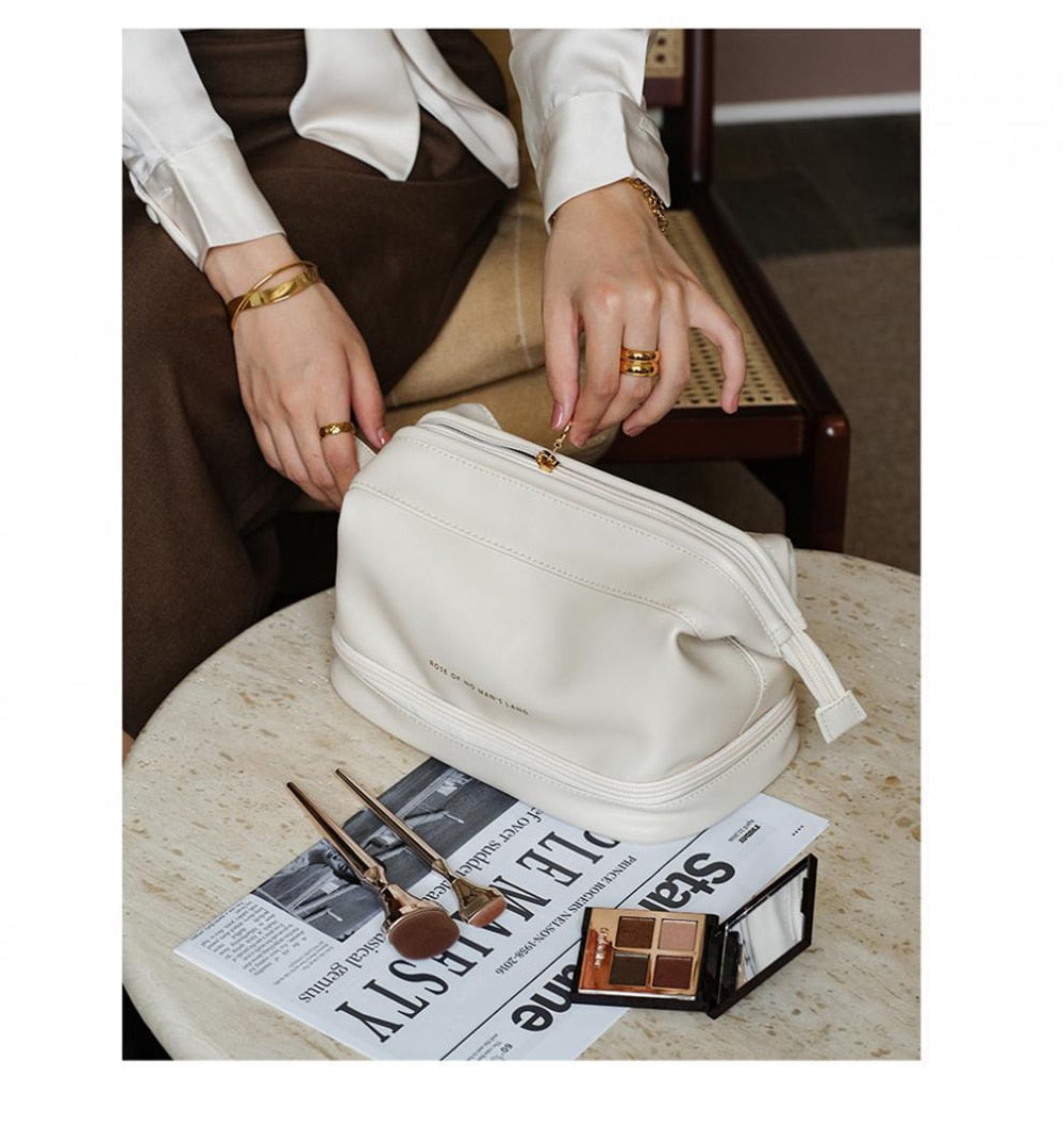 Double layer cloud cosmetic bag made of cream leather, soft and premium like a cloud.