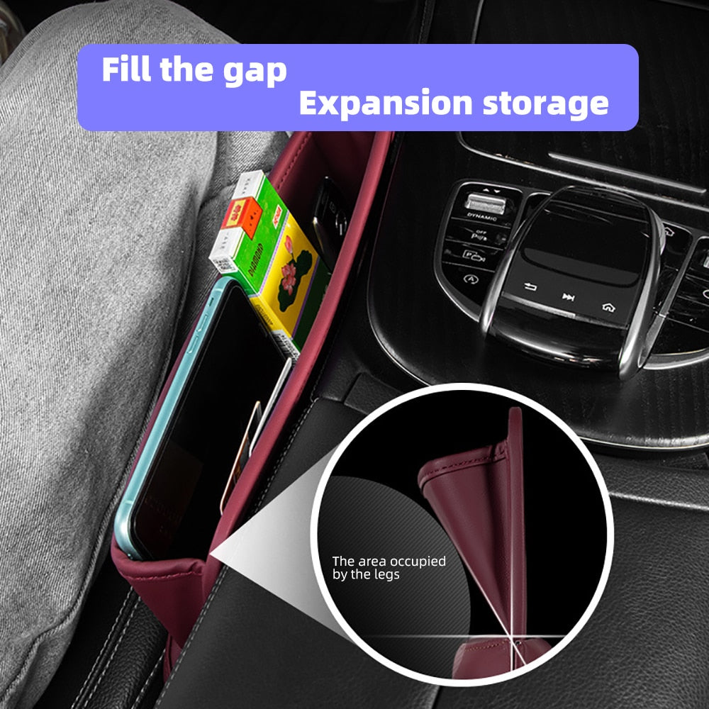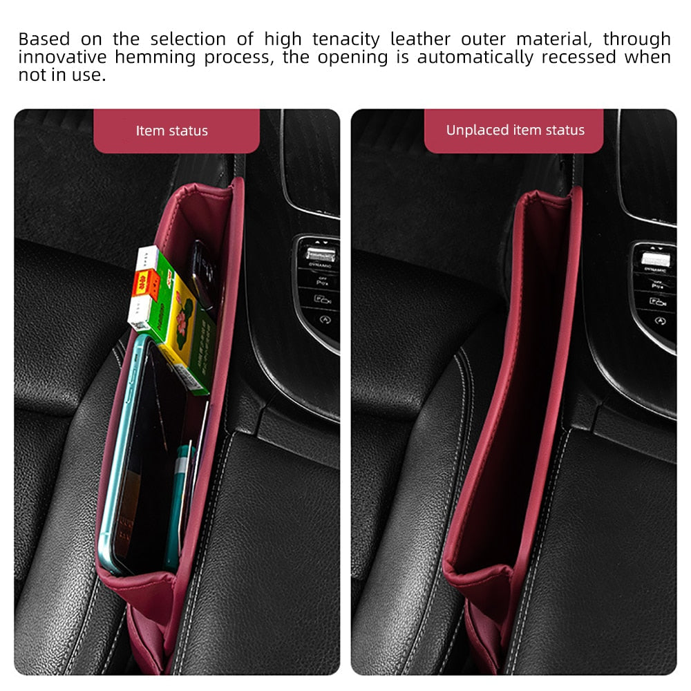 A MUST HAVE STORAGE This Leather Car Seat Slot Storage Box is great to keep your pocket necessaries organized for a safe and enjoyable ride. This will save you countless times from digging between the seat and center console to find your dropped cell phone, credit cards, money, keys, coins, etc. STRONG COMPATIBILITY This car storage's detachable design, flexible and can be adjusted, no need to worry about the seat gap is wide or narrow, the utility model can ensure that the storage box does not fall. HIGH QUALITY Our Leather Car Seat Slot Storage Box is made Of high quality PU Leather that has a good grip to stay in place when moving the seat, can be used any type of car, don’t worry about the size. EASY TO INSTALL This leather storage fits all cars! Just simply slip into the gaps between your seat and center console or install in the back seat or front as you want. Also very easy to clean with water.