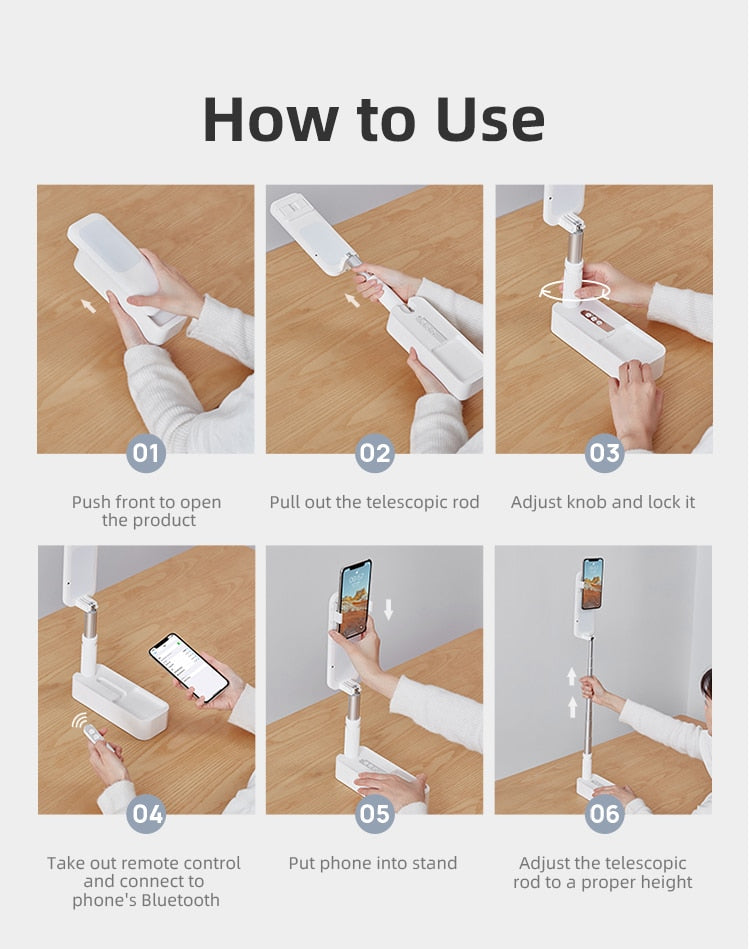 - 360° Rotate - Come with a 360°rotatable LED light with phone holder. Easily to switch between different angle satisfy your multi angle shooting needs.