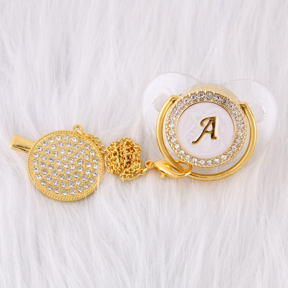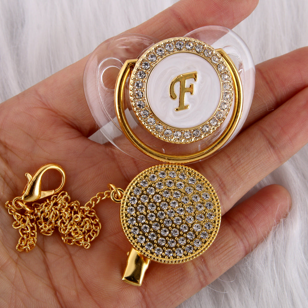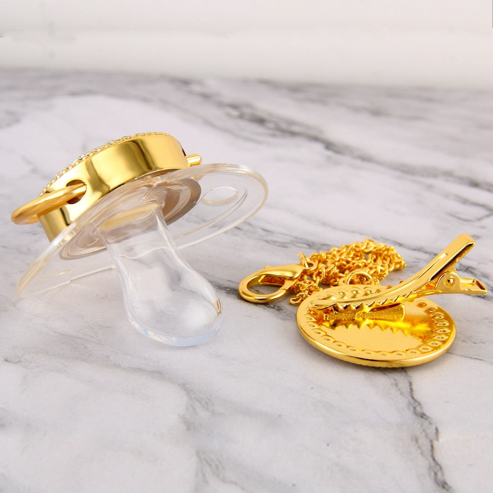 This pacifier set with premium Swarovski crystals that won't fall off! It is suitable for a little prince or princess in your life. As a gift or for your baby it will allow your baby to have a personalized pacifier that you can't find everywhere.
