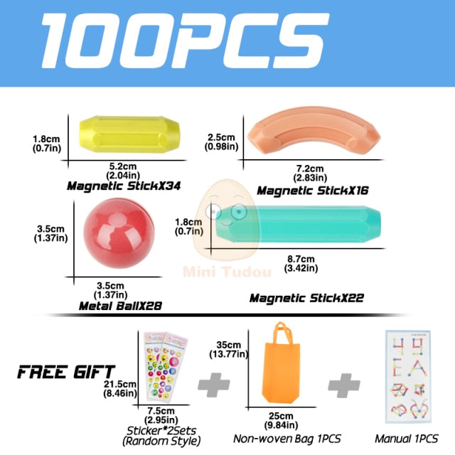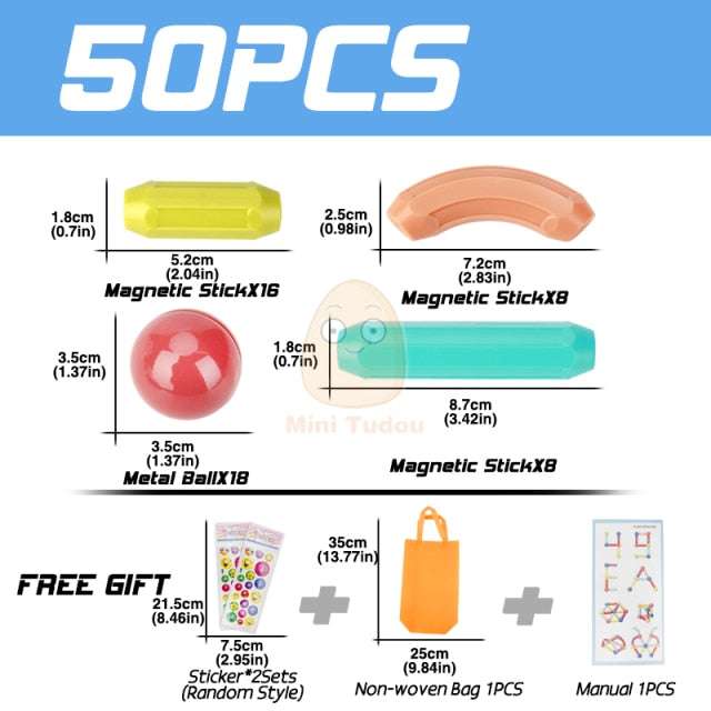 With 25/36/42/54/64/74/84pieces in a variety of shapes, your child can choose between curved & straight shapes in different lengths, develop their creativity and plan intricate designs with our dazzling PASTEL COLORS, that ignite the imagination and give an artistic touch to every model, turning every day to a party with the balloon-like style of the magnets.
