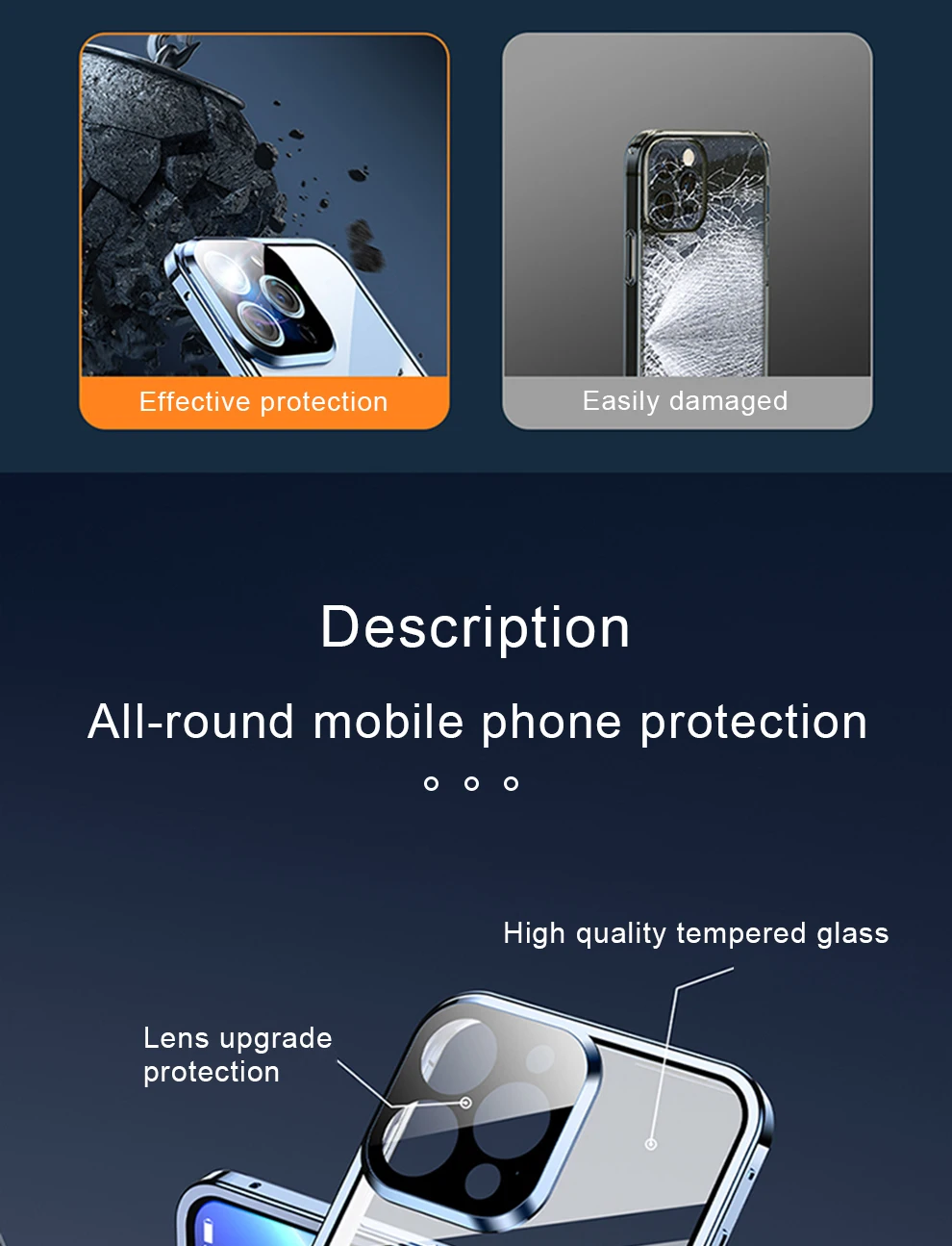 Magnetic Double Sided Tempered Glass Phone Case for iphone