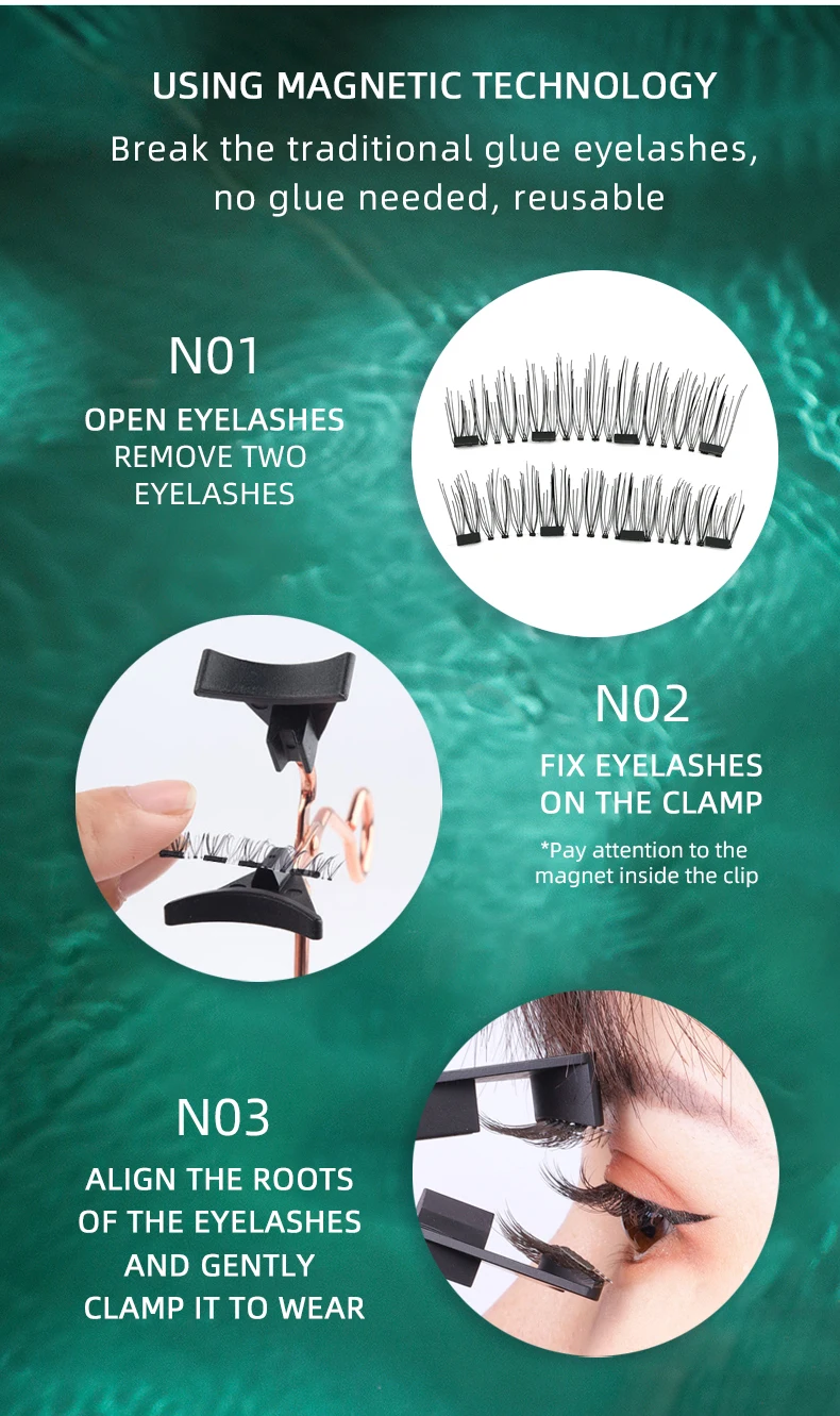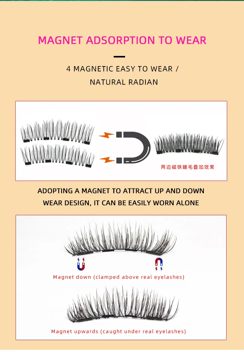 Magnetic eyelashes glue free natural magnet false eyelashes 3d handmade with quantum eyelash curler