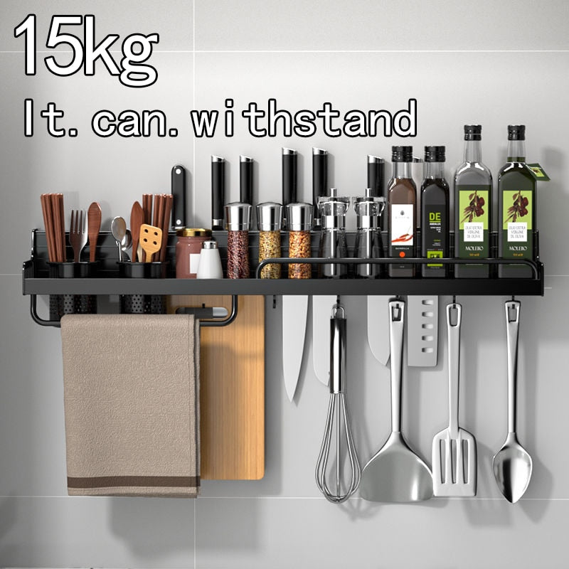 It has 1 fixed hanging support to place kitchen towels and 10 sliding hanging supports to place any kitchen utensil such as spoons, spatulas, forks, tongs, ladle, potato peeler, etc.
